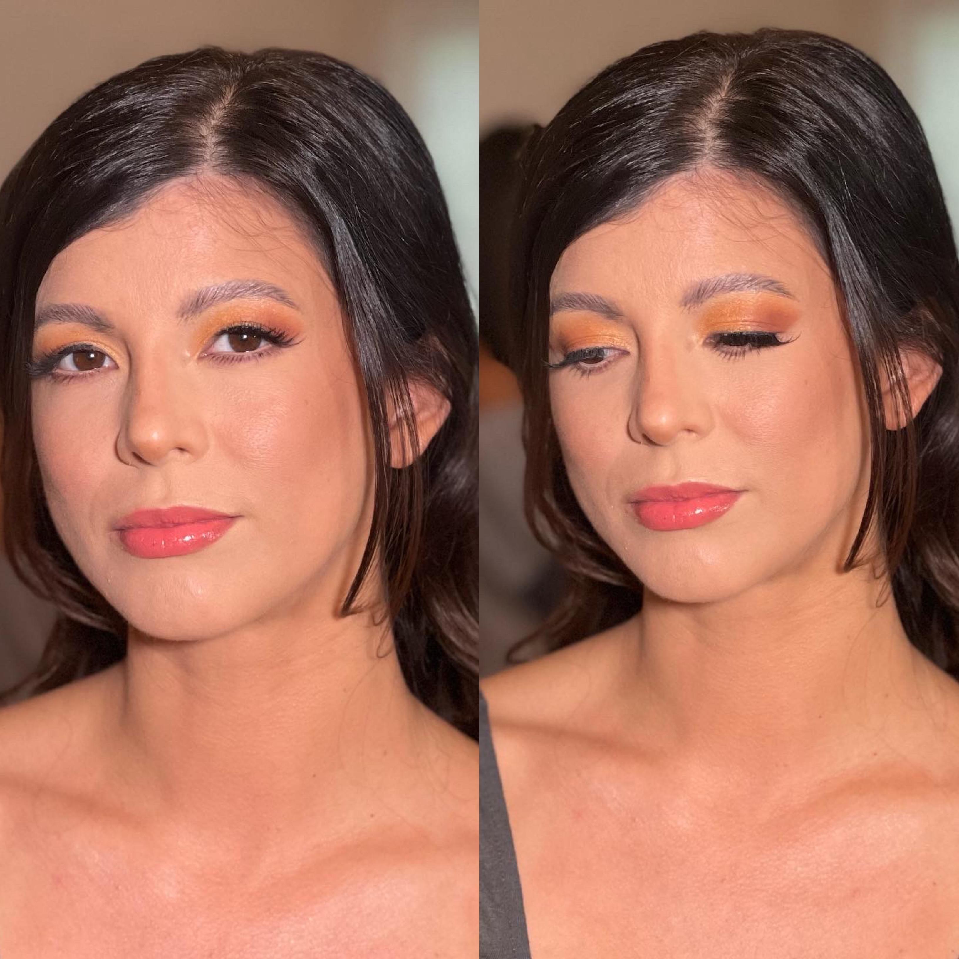- Airbrush makeup, hairstyling, lashes, skin prep