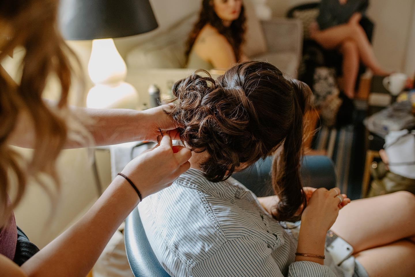 Julianna was truly a dream to work with. She was recommended to me by my makeup artist, and I knew I needed her to do my wedding hair as soon as I met her. Julianna's personality is infectious. She was such a pleasure to work with, and really hyped up my bridesmaids and I when we got ready the morning of my wedding. She worked with my clip-in extensions, which stayed flawlessly and looked stunning, and she ensured that I felt both gorgeous and like myself. All of my bridesmaids also felt lovely. She did such a good job working with all different lengths and textures of hair. Cannot recommend Julianna highly enough!