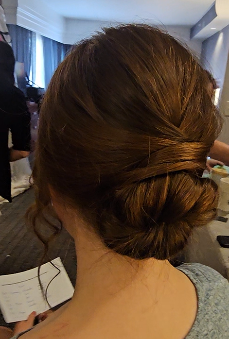 I was a bridesmaid in a wedding she did the whole wedding party's hair and did a great job. She was organized,efficient, and friendly. Everyone's hair look beautiful. I gave her a picture of what I was thinking for my hair and it turned out way better than I expected. Would highly recommend to anyone looking to book hair for their wedding party.