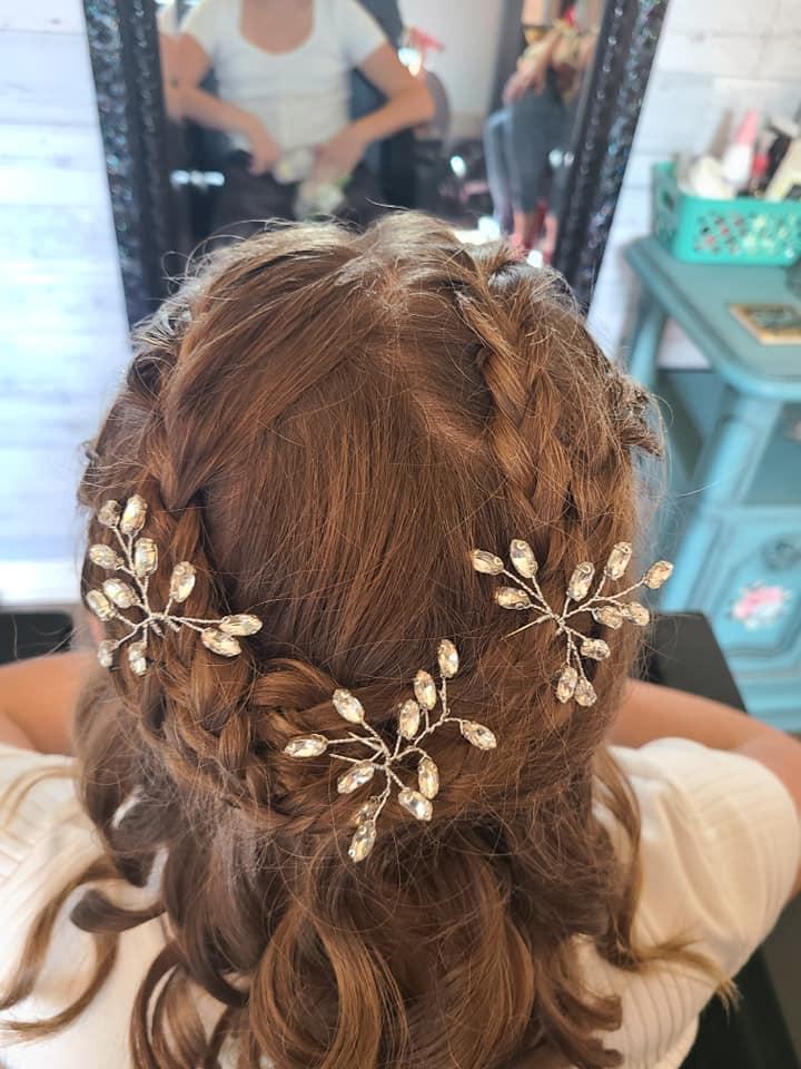 I have specialized in creating updos with customized clip in extensions )that I have made)- to make that perfect updo! Pin up styles are one of my absolute favorites as well! I have had experience with many hair textures and types! Also, I feel like my styles are very romantic and whimsical.