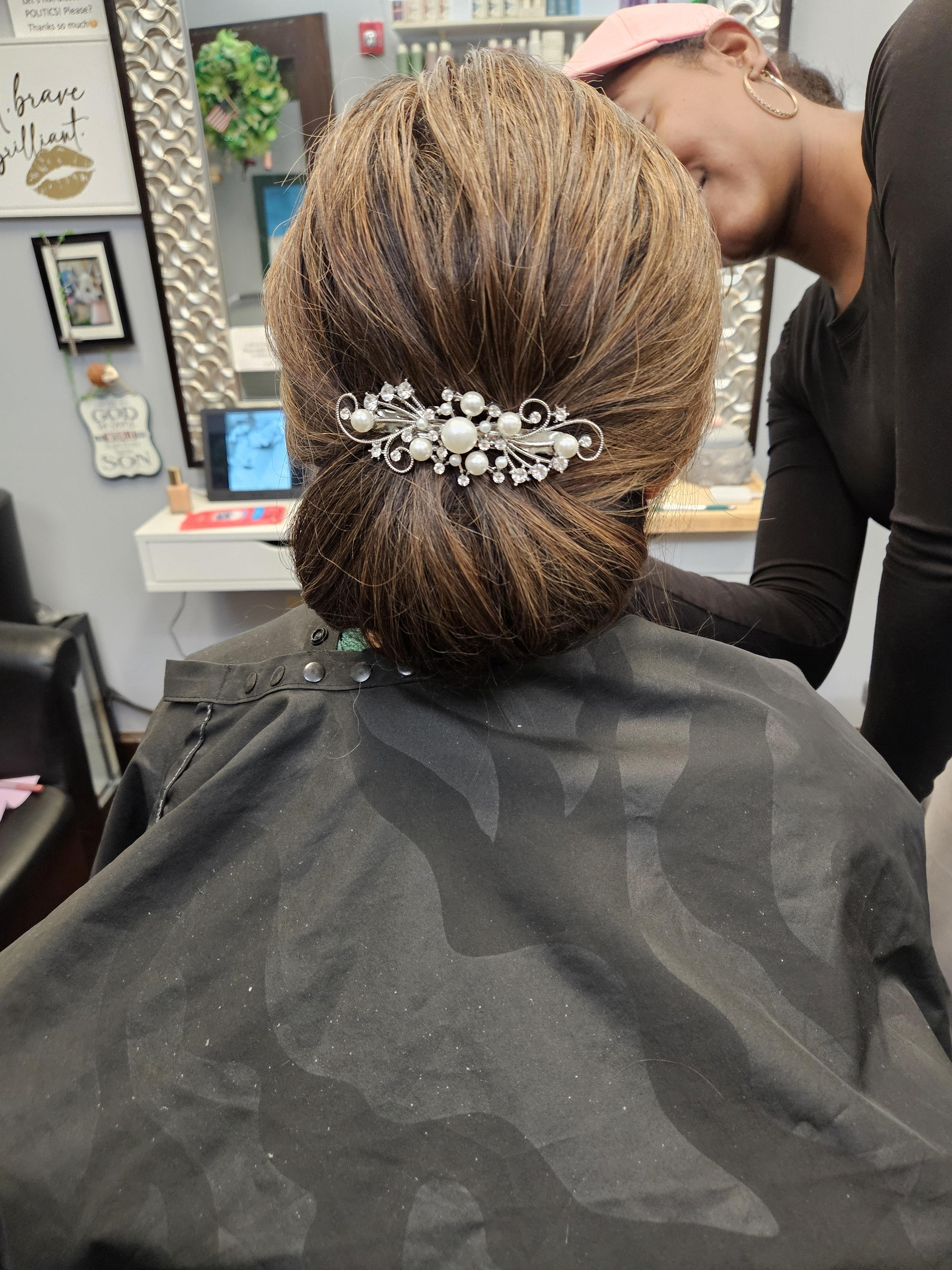 Becca did my wedding hair and my mom's and my maid of honor's hair. She did an absolutely amazing job for all three of us. My mom and maid of honor's hair was very beautiful. I came in for a trial about a month before. She helped me pick the style I wanted as I was very indecisive. My hair on the day of the wedding turned out exactly the way I wanted. My hair was absolutely stunning. I got so many compliments on my hair. It also held up so well. We got married on a very windy day. My hair held up all day even with the very intense winds and all of the dancing afterwards. I would highly recommend her!