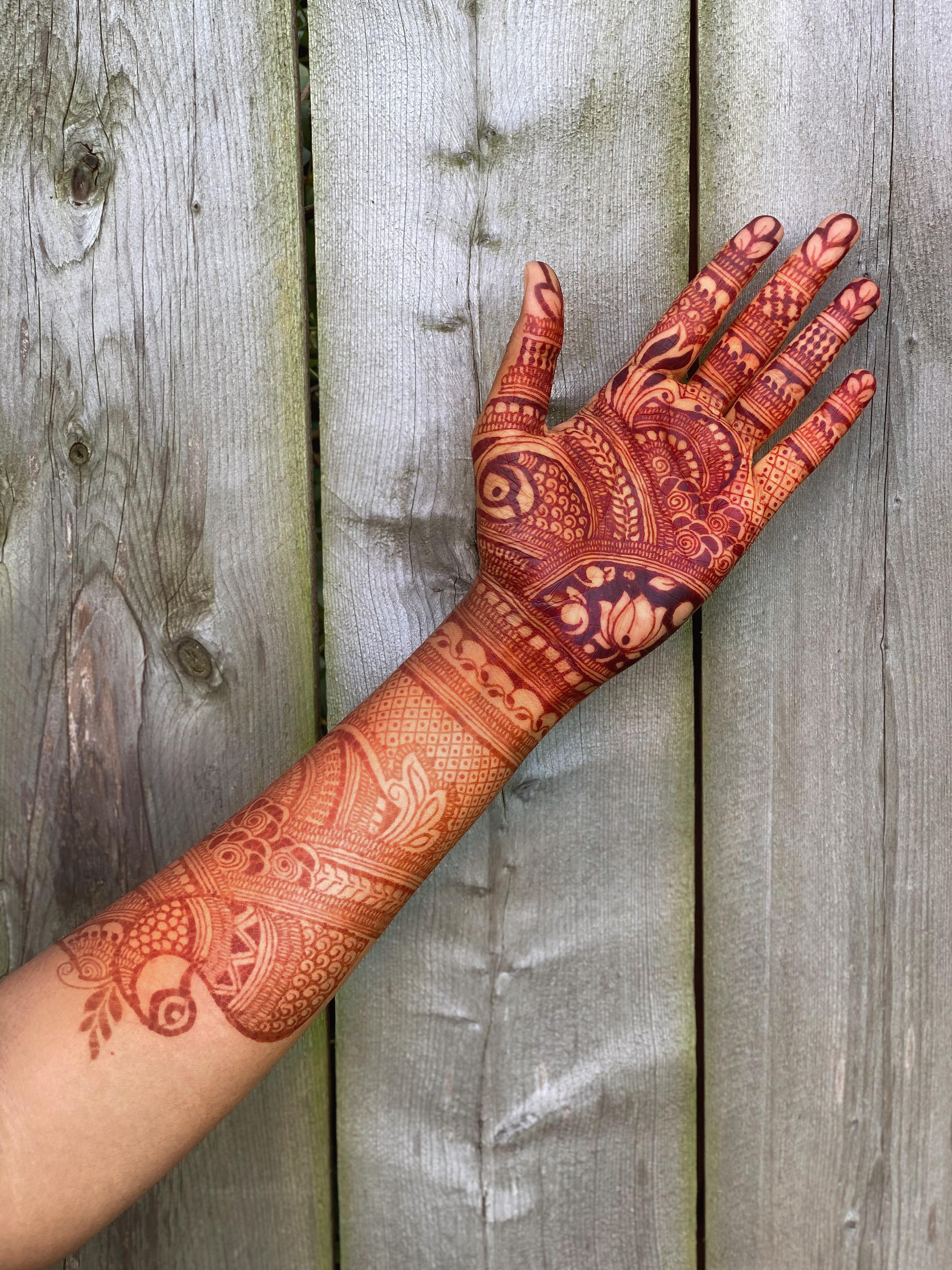 “I was always “Art Mad” or “Artistically Inclined” and sketching, drawing and painting came to me instinctively like a fish takes to water. I feel blessed and a chosen one by divine to do henna on someone's very special day, which gets etched in their memories forever. Their smiles and appreciation makes hours of tough grinding seem very welcome."