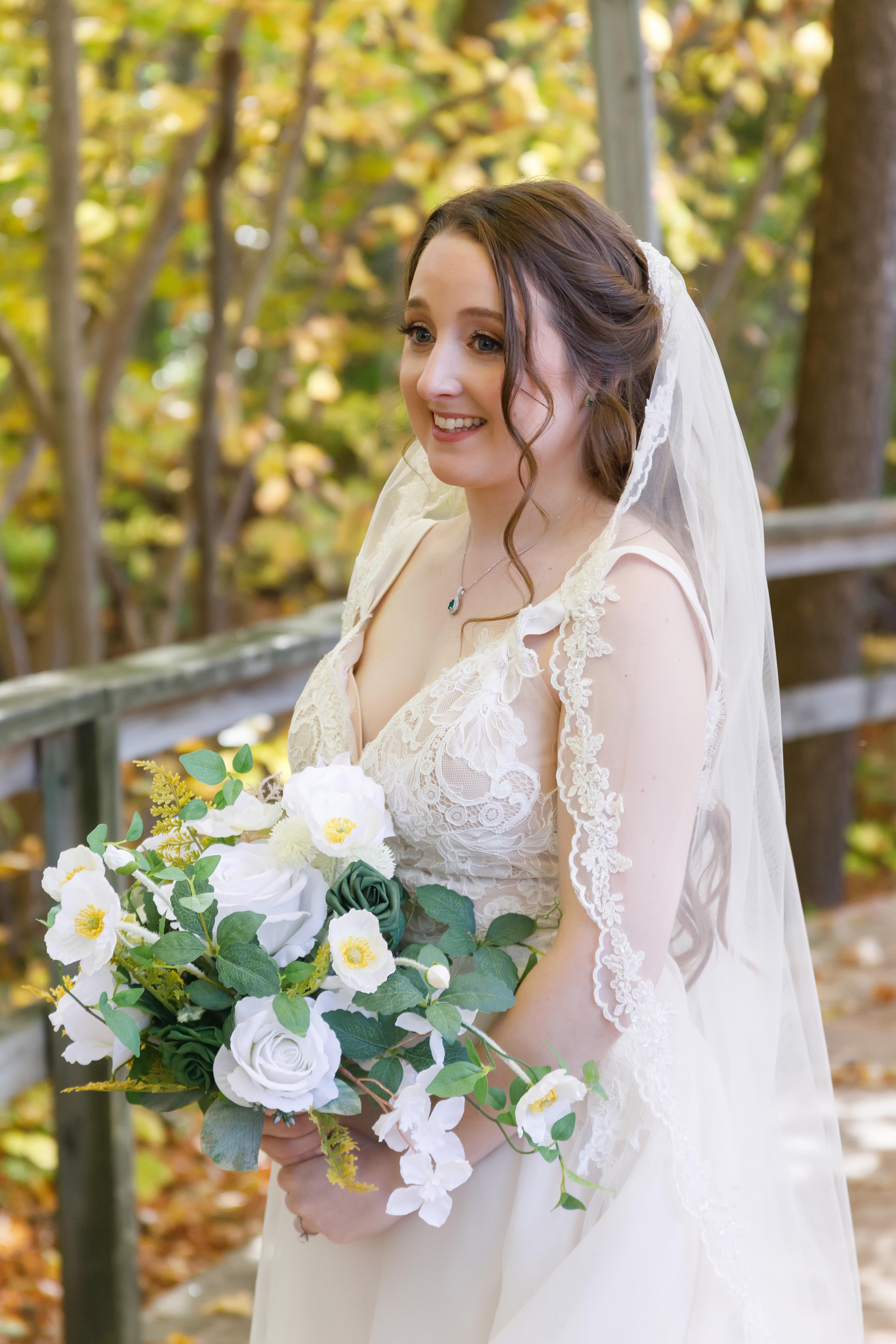 I had my trial in July for my October wedding, and I’ll admit I was a little nervous since I never wear makeup and didn’t know what to expect. I told Pam I didn’t want really heavy makeup up and she listened. The makeup looked beautiful, but I was a bit concerned about how long it would last since I couldn’t keep it on for long after the trial. My curls also weren’t as tight as I’d hoped, and they fell flat after a few hours, so I worried they might not hold up on my wedding day. I shared my concerns with Pam and Brenna—especially about my hair, since it never holds curls—and they truly listened. On the day of the wedding, they absolutely nailed it. They were also so fun to work with. My makeup and hair both lasted all night long, and my hair was exactly what I had envisioned. It couldn’t have been more perfect! I don’t have professional photos yet but these are some friends took.