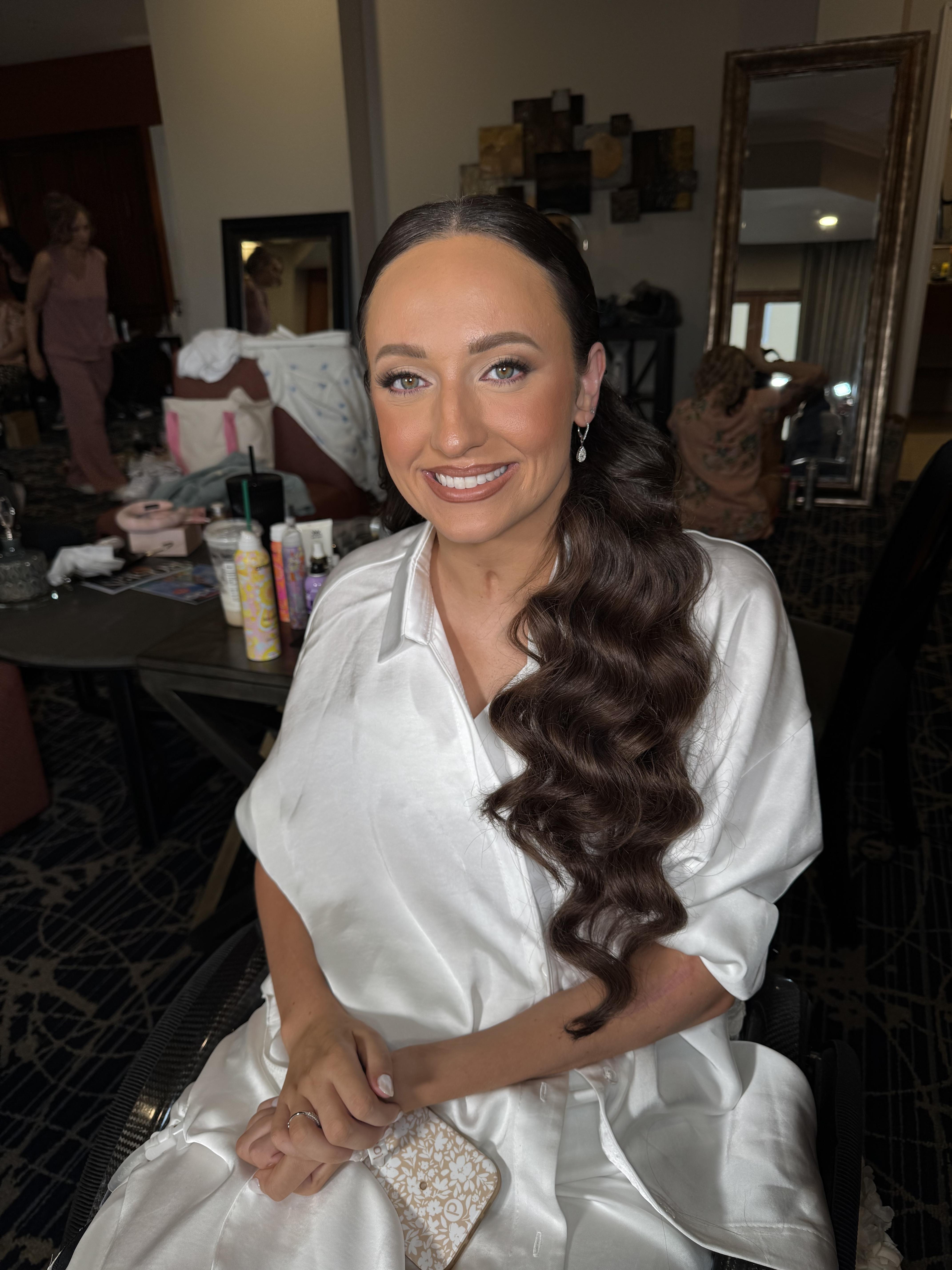 Dani was amazing! She made me and my bridesmaids all look gorgeous. My bridesmaids all had updos, and their hair stayed all day and night long, and I went with Hollywood waves. She is so talented! She made sure I had the best match for my extensions, and walked me through wedding prep leading up to the big day! Her communication was amazing, and I’m so glad to have such a wonderful communicator from our initial trial, collaboratively working with our makeup artist, to wedding day, having her stay with me for touch-ups through our first look was a godsend. She even sent me an abundance of her own behind-the-scenes photos from our first look, and she was there to hold my veil, etc. as needed. So glad to have had her calm presence and talented hands throughout our wedding process and wedding morning! If you’re considering booking Dani, do it! Her talent, professionalism, and calming presence made such a difference on my wedding day, and I couldn’t recommend her more.