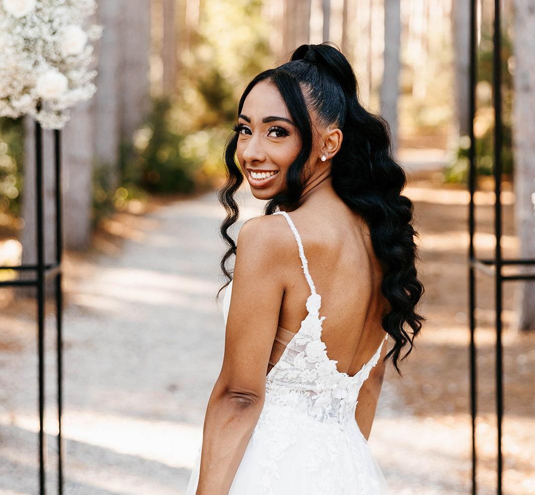 Our bridal hair package includes both a trial run and day of hair style. Our talented team of licensed hairstylists can create any look from modern and elegant updos to big boho braids and Hollywood glam waves.