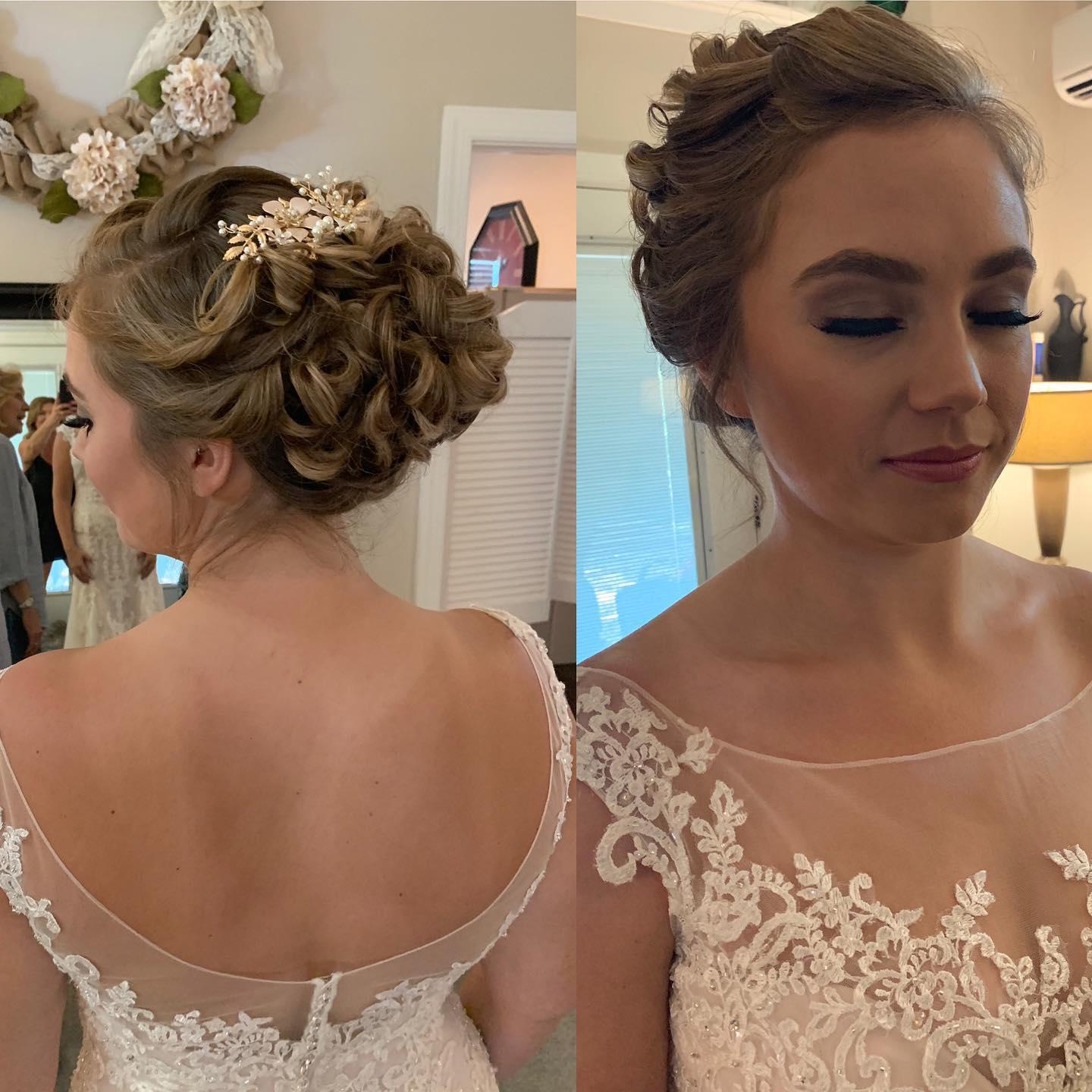On-Site Day of wedding, Hair, and Makeup: 1380 Bride plus four people Up-do of choice HD Makeup Application Touchups as needed Serviced on site up to 20 miles $200 travel fee included in the price