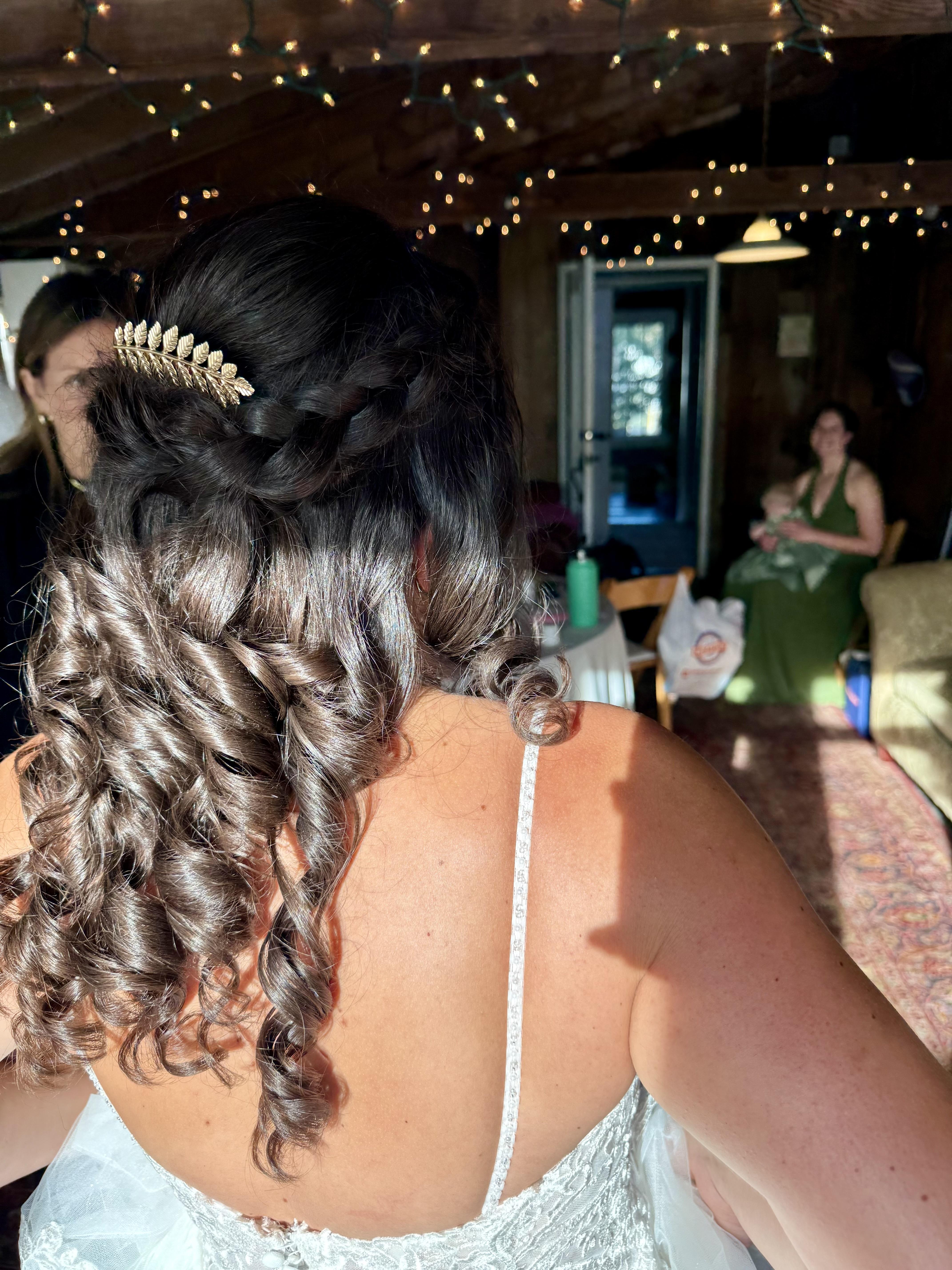 Katie was incredible with my hair on my wedding day. She made what I imagined a reality. Not only was it absolutely beautiful but it was also extremely comfortable. She made getting ready for my wedding a breeze and showed up right on time! Have to give extra credit for her being able to manage my crazy frizzy and curly hair. The style lasted all day and night no frizz in sight!