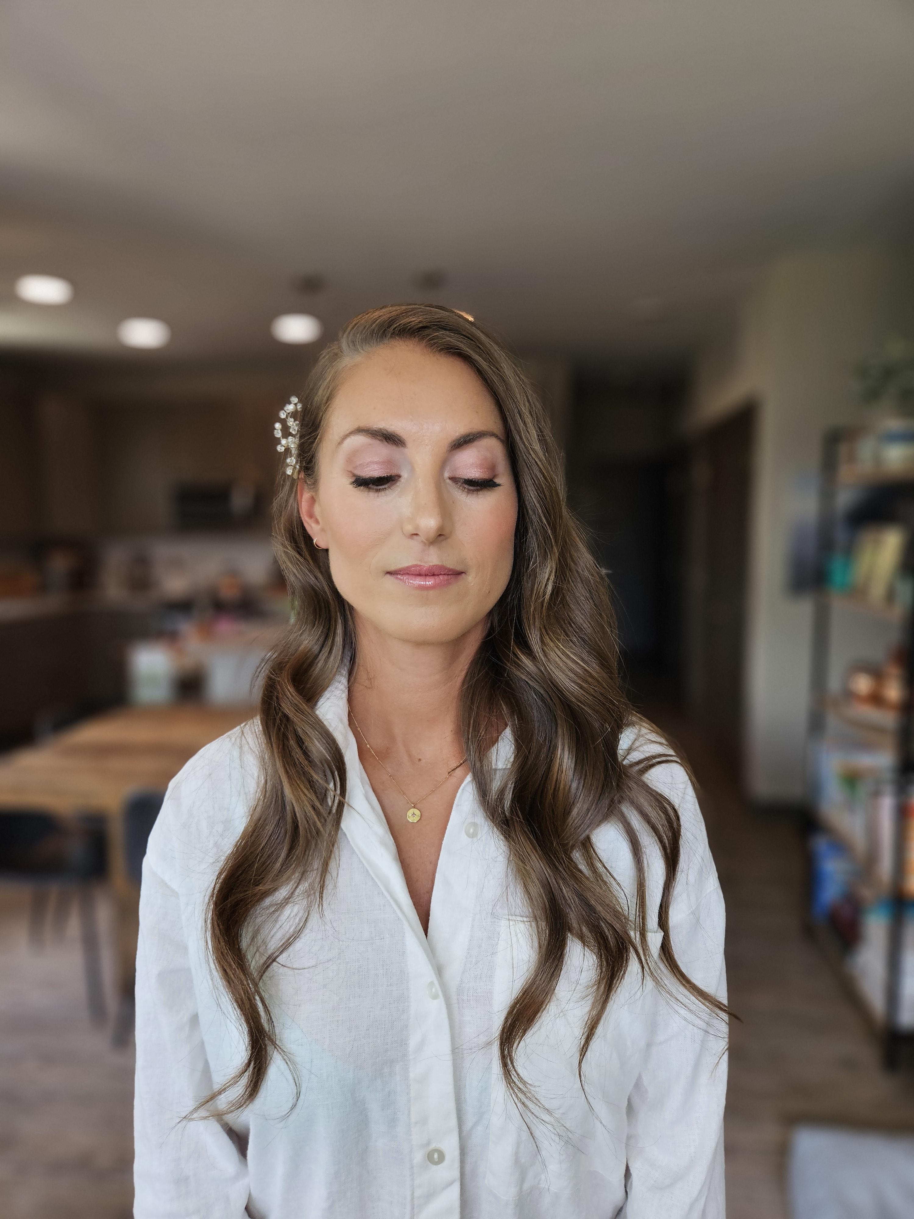 Includes a custom hair and makeup look for your wedding day! -Custom skin prep -Personalized hair and makeup look to your request -Lashes are included (strip or individual) -Touch up kit for wedding day *Price also includes your hair and makeup preview session, typically booked 2-3 months before your wedding*