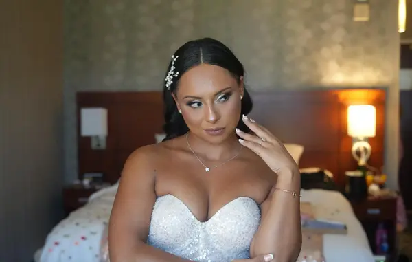 All eyes on you. This package includes bold, full glam makeup with dramatic definition, complimentary lashes, and airbrush application for a flawless finish. Hairstyling options include Hollywood waves or a chic bridal updo. Perfect for the bride who wants a high-impact, unforgettable look.