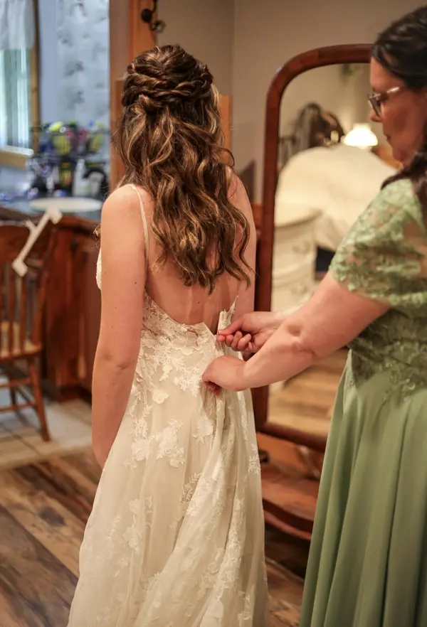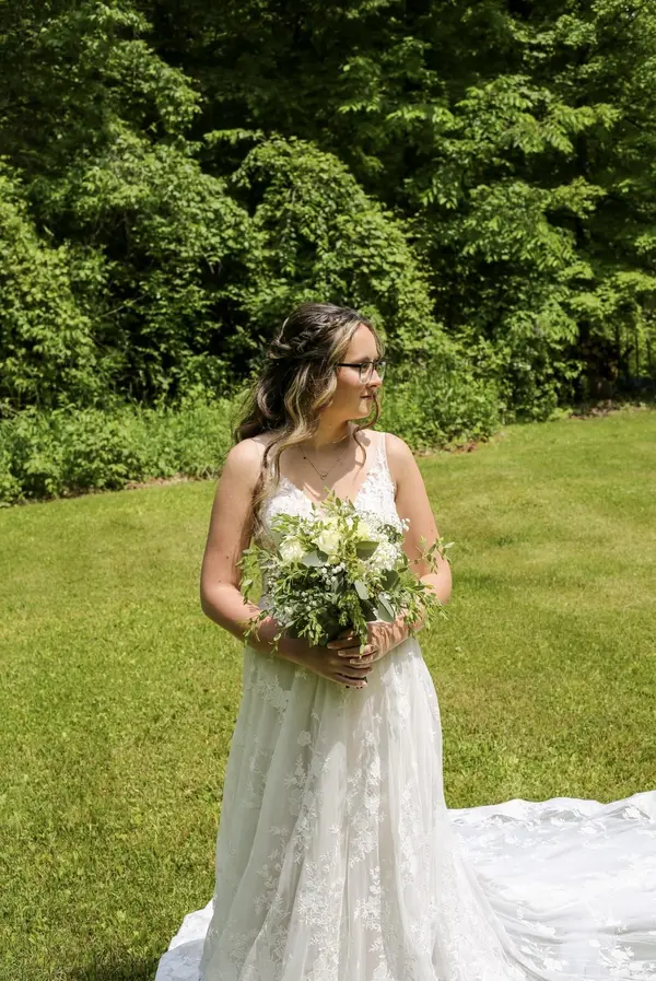 I was so happy with my hair and makeup from my wedding day. I had a super complicated updo that required two practice sessions, and my hair stylist was so patient and willing to work with me until we figured out the exact updo I’d had in mind. I have a ton of hair and it’s long and she was so incredible at coming up with ways to get the exact hairstyle I’d imagined. My makeup artist was wonderful too! I got highlights and a quite a bit of sun (for me) after we did our trial run and she was able to pivot and make sure the makeup we did on my wedding day was perfect despite my skin tone and hair being drastically different than before. They were both lovely to work with and I was so happy with how things turned out.