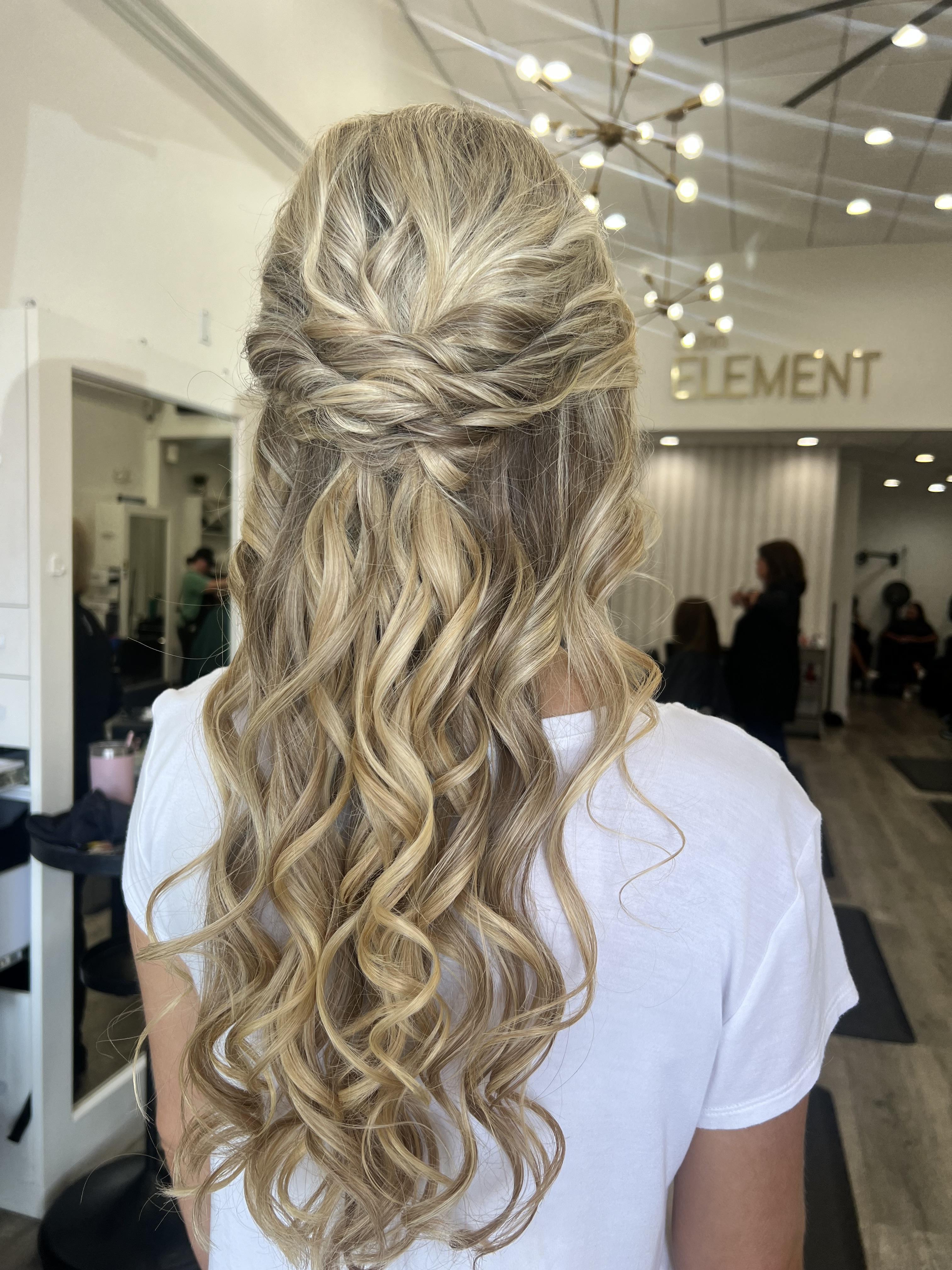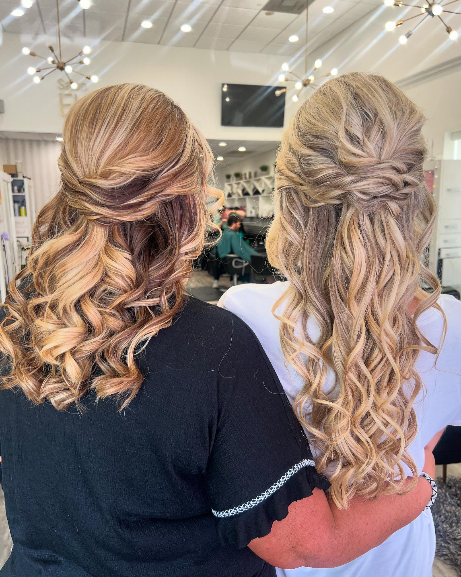 I have worked behind the chair along with doing on location services for 7 years now and I have loved every minute of it! I always know what my go to products are for each style I do. Product knowledge along with skill is so important to ensure my clients style is long lasting and looks beautiful through out the night! I have traveled a far as The Woodlands Texas for someone’s special day! I come to you to relieve any stresses on your big day!