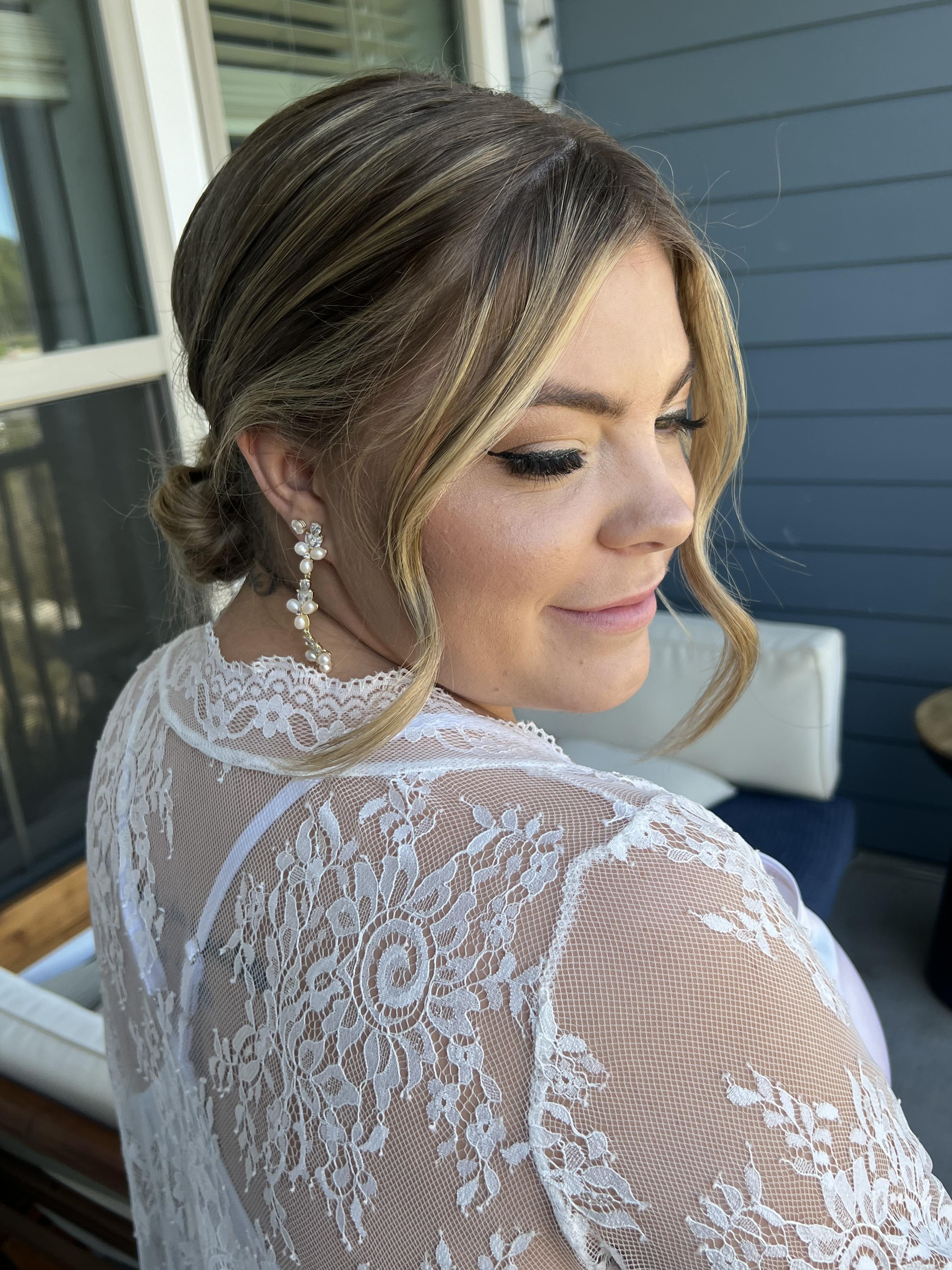 I am terrible with hair and makeup and I’m so grateful to have found Morgan. She made the process so simple, easy and fun. I sent her pictures of how I wanted my hair and ideas for makeup and she absolutely understood the assignment and she was able to change it up to accommodate the weather and humidity. My hair stayed perfectly throughout the rest of the afternoon into the evening and my makeup was flawless. I felt so pretty and confident, the way a bride should feel. Thank you so much, Morgan!!!!!