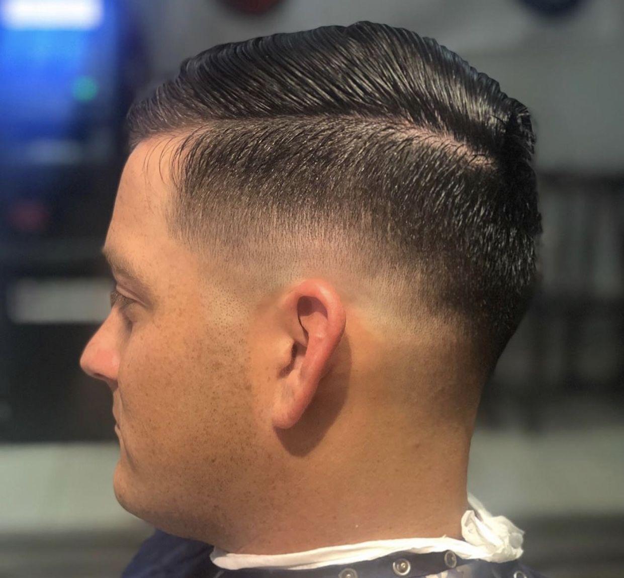 Precision haircut, style with product, beard clean up, neck shave with hot towel.