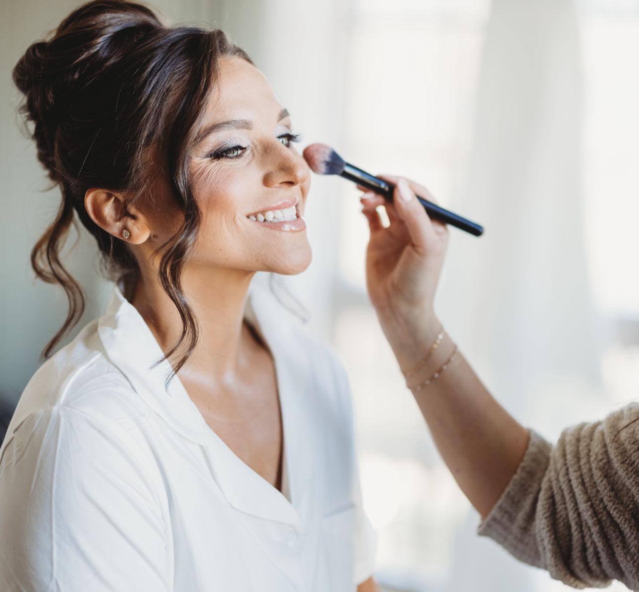 • Bridal makeup on wedding day • Bridal trial • Premium skin prep & luxury products • Lashes • Personalized touch-up kit • 30-60 min on-site touch-ups after ceremony
