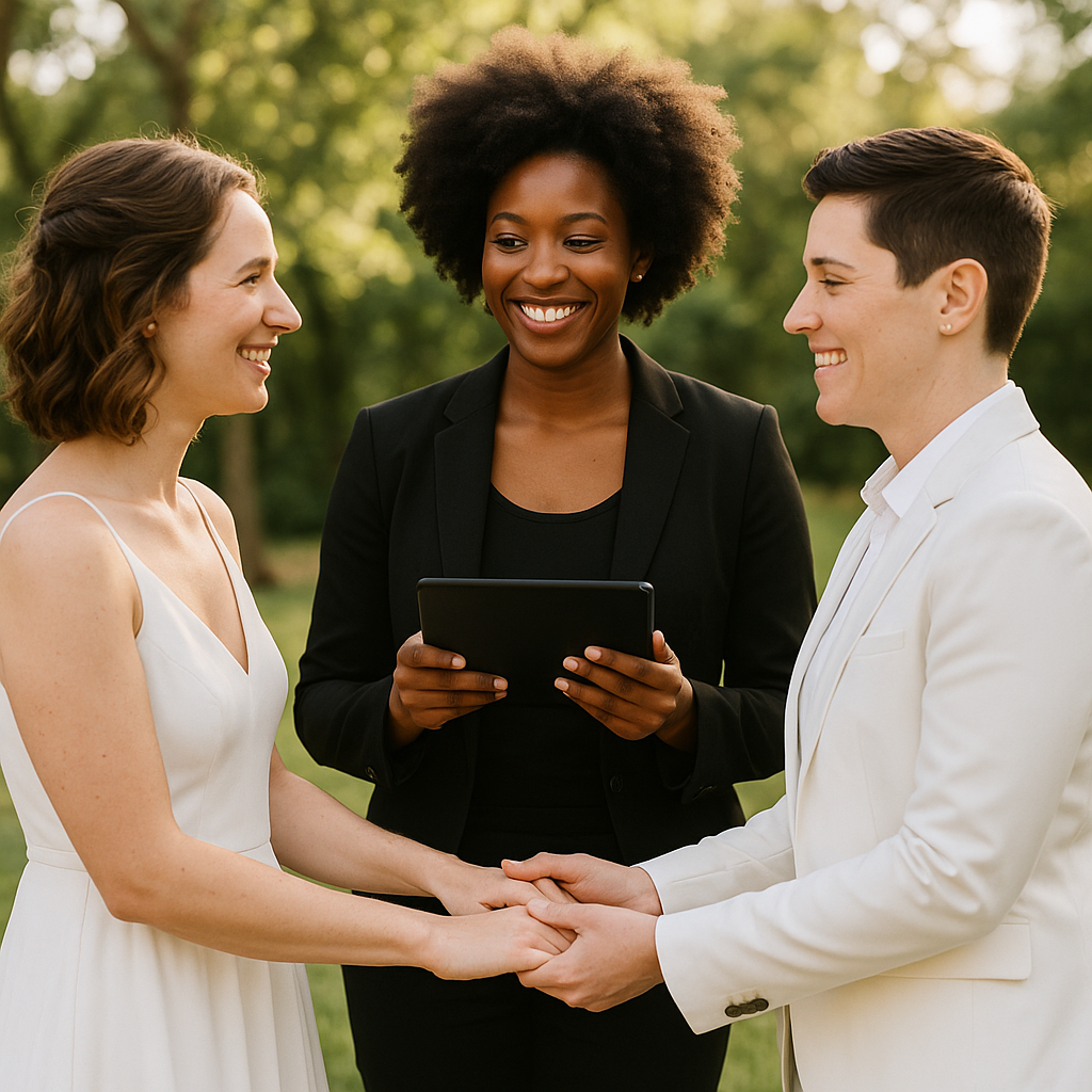 A streamlined yet heartfelt option for couples who want a beautiful, no-fuss ceremony. This package includes your choice of a pre-written ceremony script template, the exchange of vows and rings, and a keepsake personalized marriage certificate to commemorate your day.