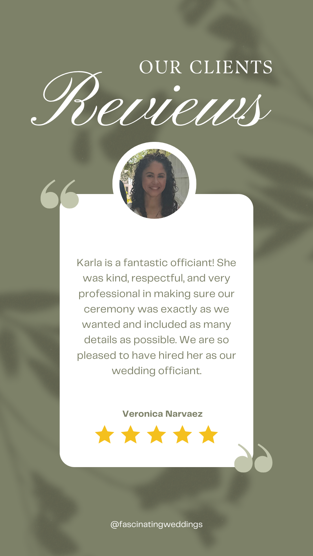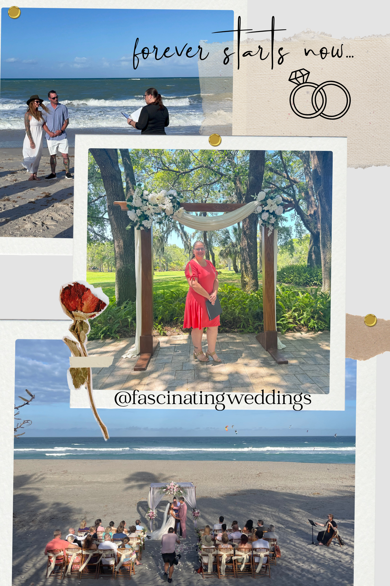 Fascinating Weddings is a personalized wedding officiant service dedicated to creating unforgettable meaningful ceremonies across Florida. As an experienced, bilingual ordained minister and Florida notary, I specialize in crafting custom wedding experiences that reflect each couples unique love story, culture and vision.