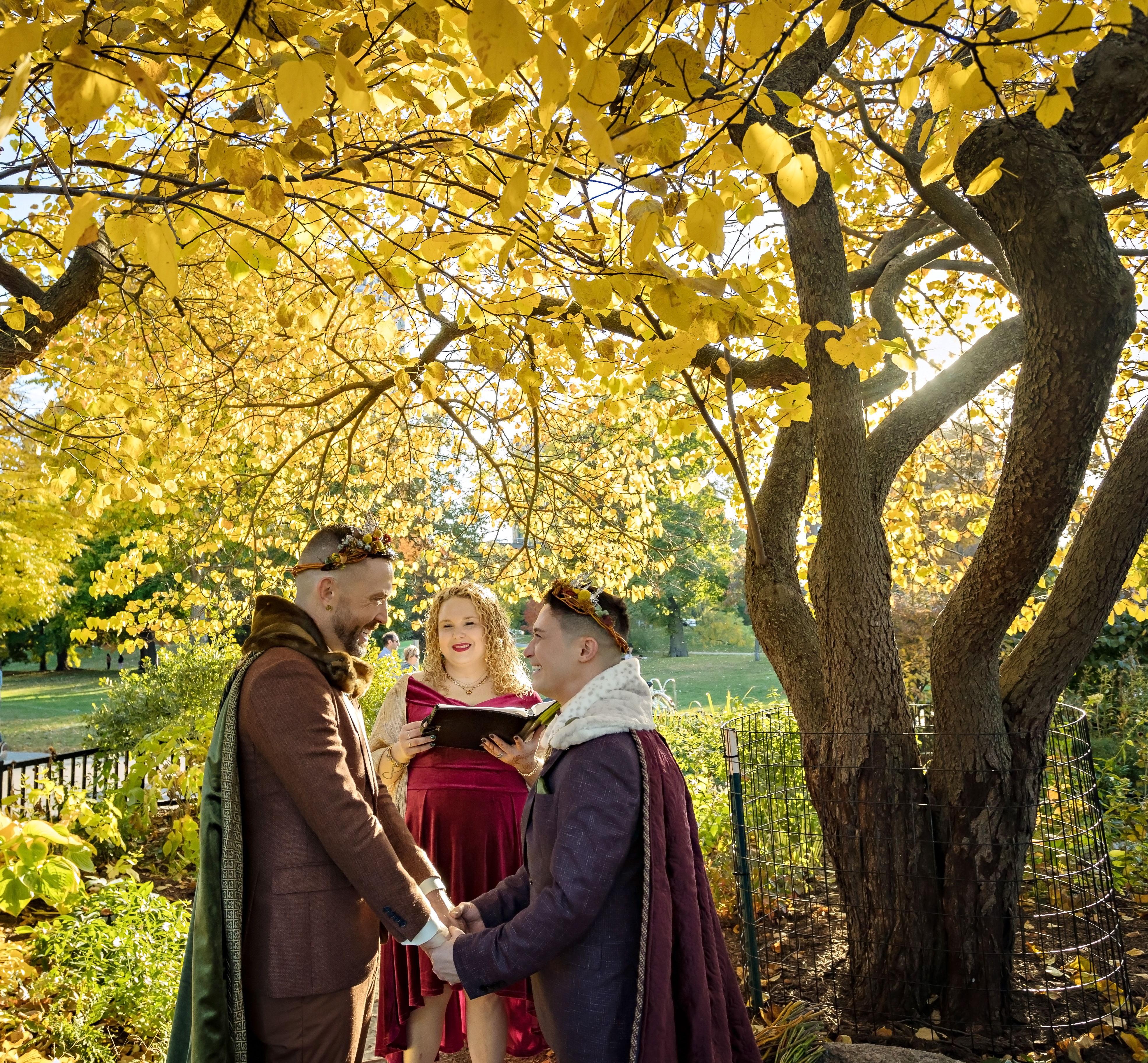 What sets me apart is how deeply personal I make each ceremony. I don’t use templates—every ceremony is custom-written from scratch, weaving in your story, personalities, humor, and heartfelt moments. As a former wedding photographer, I understand the flow of a wedding day from every angle. I support couples writing their own vows and offer coaching and scripts for friend or family officiants. My ceremonies are warm, inclusive, and always centered on you. I have extensive experience with multicultural, interfaith, and fusion weddings, and I’m a proud LGBTQ+ ally.