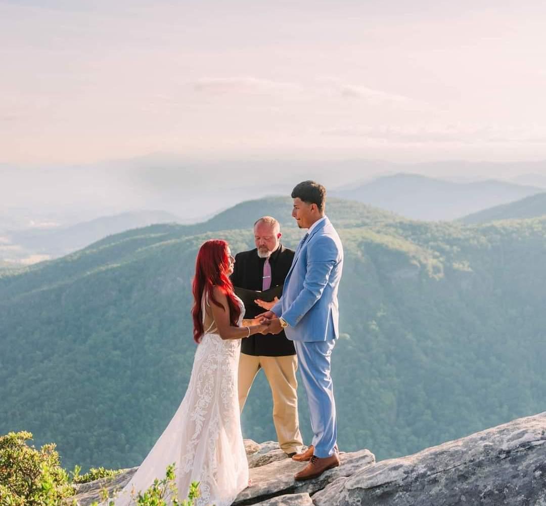 My region ranges from Asheville NC, Southwestern Virginia, through Morristown Tn, into Gatlinburg, then all the way into Knoxville Tn! By the time you've reached my page, you may have prepared yourself and have researched (or still are) to find the right Wedding Officiant. It's my professional job to make your wedding as stress free as possible. I enjoy adventure elopements and large elegant weddings. When you decide to hire a Pro, you probably want someone with empathy that understands what you're looking for. Your ceremony will be thoughtfully created and not boring.