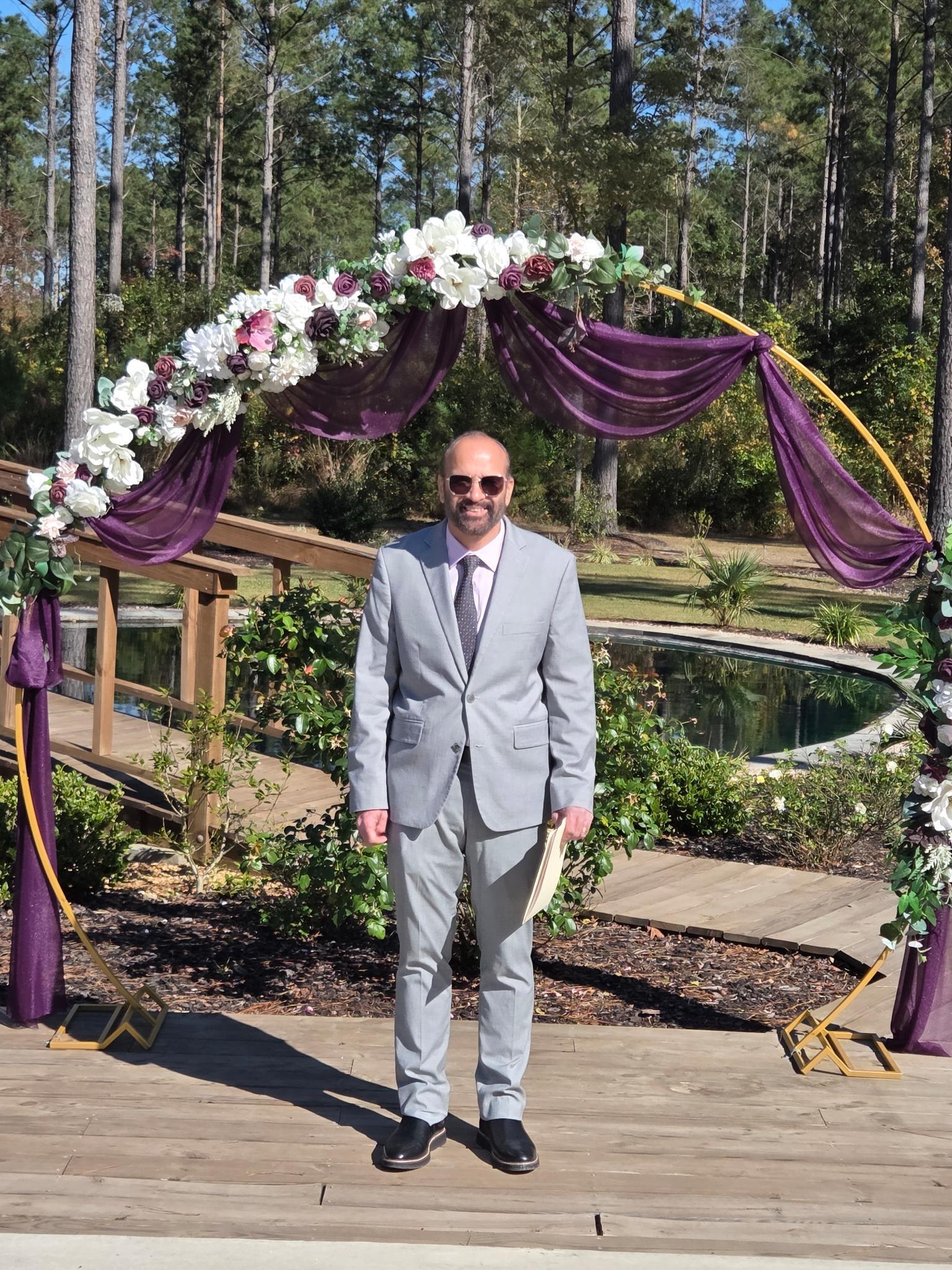 James – Your Dedicated Wedding Officiant Your love story deserves a ceremony crafted with care and passion. As your officiant, I provide meaningful, personalized ceremonies that celebrate your unique bond. Licensed through Christian Leaders Institute & Alliance and certified in premarital counseling and project management, I ensure your day flows seamlessly. Proudly serving all of North Carolina’s coast and beyond, I welcome all couples, including LGBTQ+ couples. Choose James for a heartfelt, unforgettable wedding ceremony that truly reflects you.