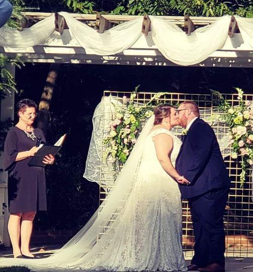 Legally Ordained Professional Officiant Initial Meeting to learn about your wedding day plans. Selection of ceremonies, vows and ring exchanges for you to choose from. Unity ceremonies can be included. Available by phone, email or text. Legal signing, handling and return of license. Keepsake package containing a copy of your ceremony and vows, a copy of the marriage license and a customized Certificate of Marriage suitable for framing. A Newlywed’s Guide to Your New Name.