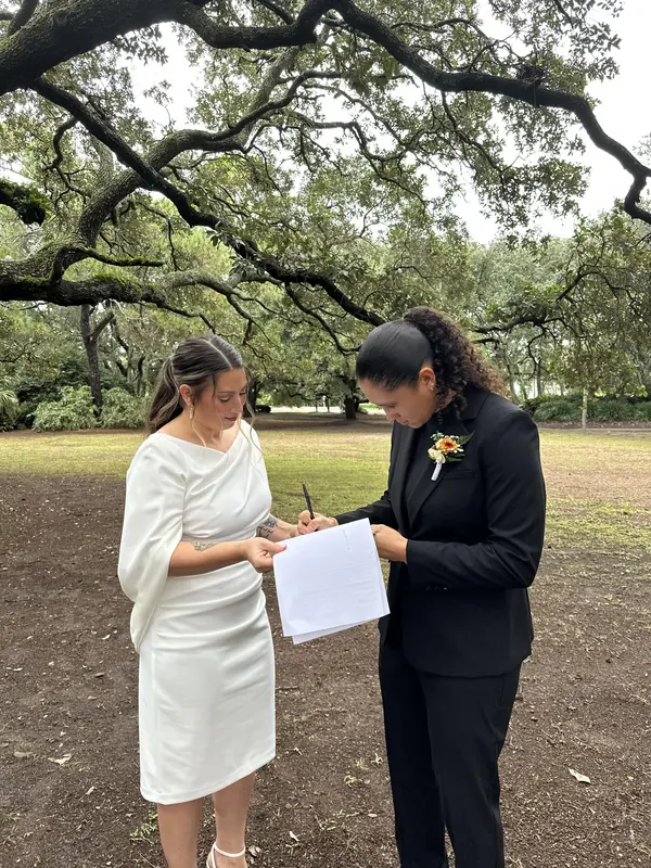 I specialize in creating simple & touching non-religious ceremonies, tailored to my couple's preferences. I'll partner with you to select and curate the perfect vows for your ceremony. I'll be there to officiate with warmth and joy on your big day. I'll be your resource for the information you need to easily obtain your South Carolina marriage license prior to your wedding (whether you live here or not). I will file it with the appropriate county probate court after your ceremony.