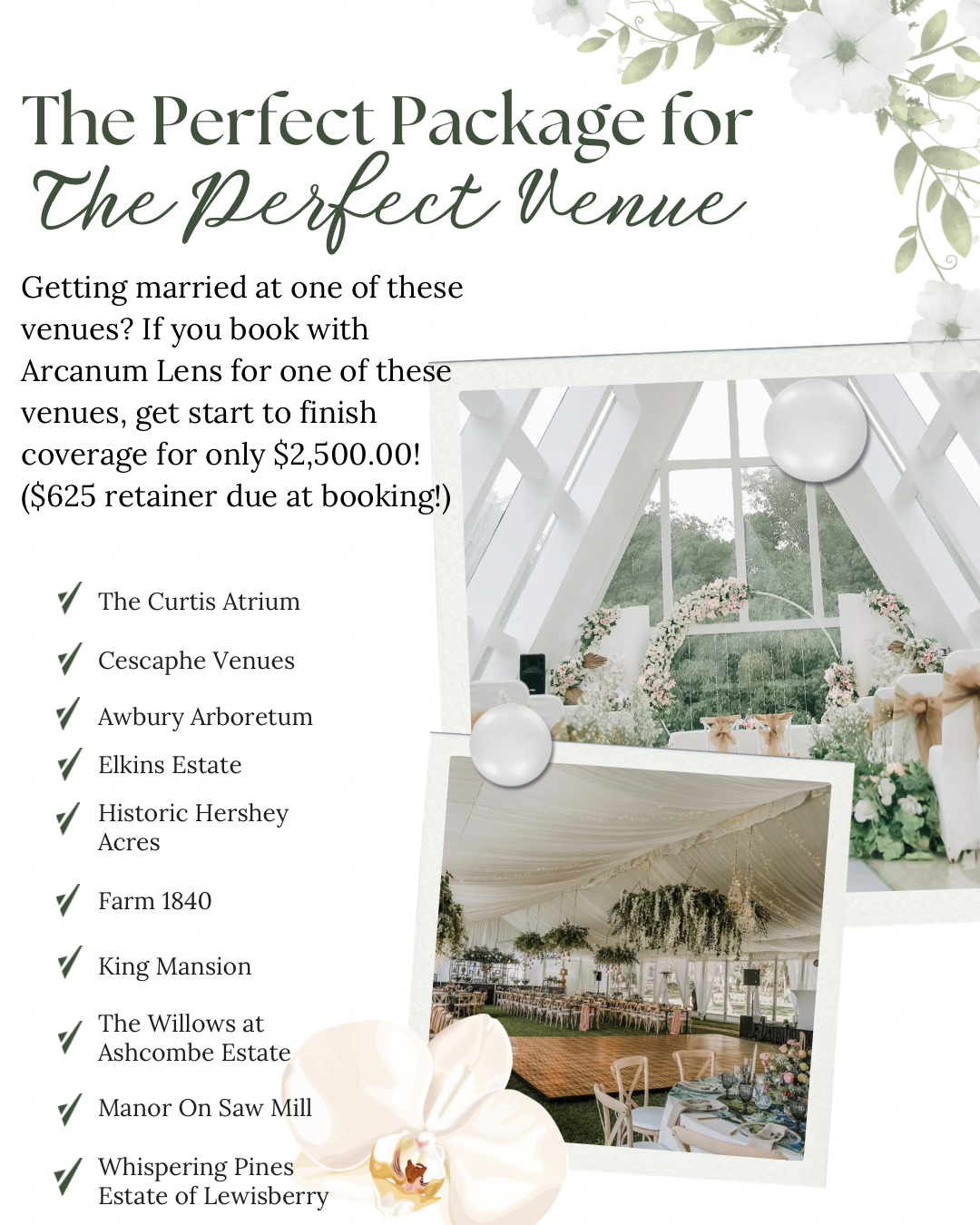 Flat rate pricing for venues Arcanum Lens Imagery wants to photograph! Inquire to see if your venue qualifies! ($1,750+ in savings)