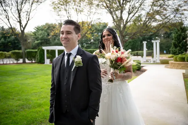 - The photographers are seen as a calming and helpful presence, even fixing a bride's veil.