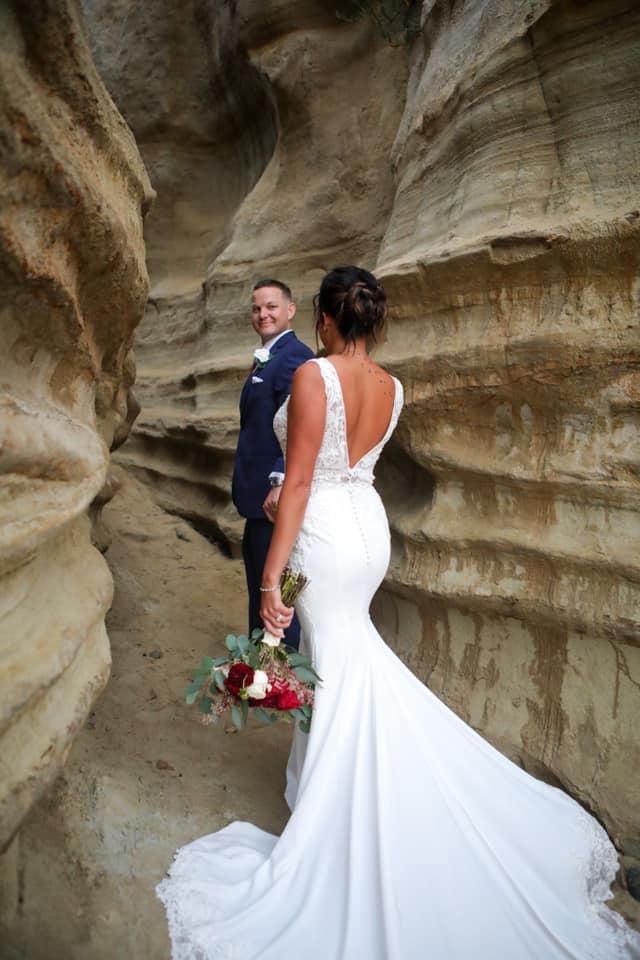 I take the time throughout the months before to get to know the couple. Where they met, how they fell in love, the first awkward moment they shared, the first "I love you" and all of the amazing special memorable moments that mean something to them. I don't want to just be a couple's wedding photographer, I am someone that cares so deeply about this amazing moment in their lives that I learn everything I can about them to make their day amazing. I am always up for hiking up a mountain or getting wet in the ocean to capture that beautiful shot.