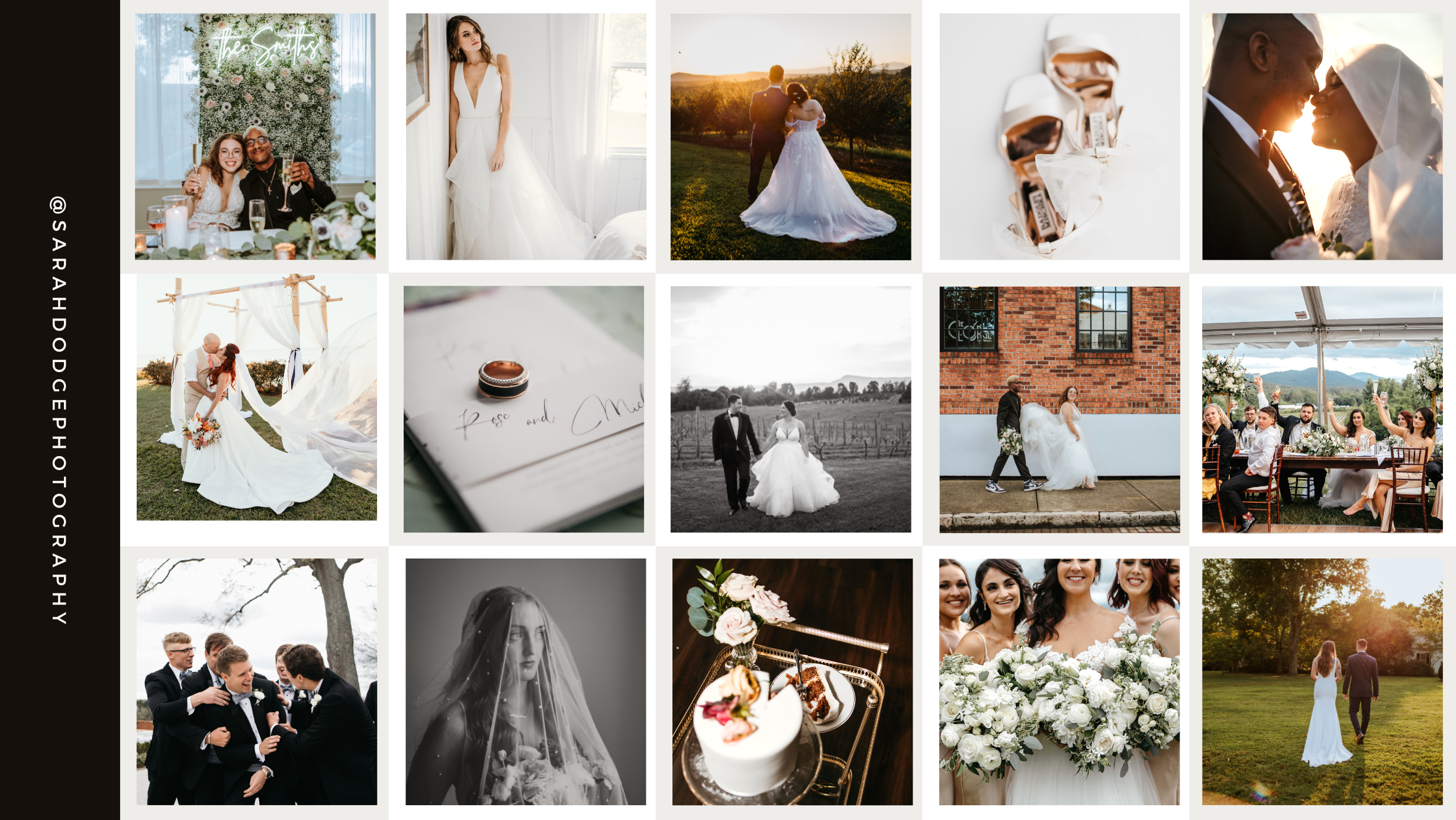 Hi, I'm Sarah! My goal? To capture the moment so you can live in it and deliver photos that are timeless, personal, effortless, and entirely YOU. I’ve been photographing weddings for ten years, so I know how to provide you with a stress-free experience that culminates with you receiving an album full of beautiful, romantic, whimsical images that stop you in your tracks and transport you back in time. Your wedding day will go by in a beautiful, euphoric blur. I’m here so you can relive it in slow motion.
