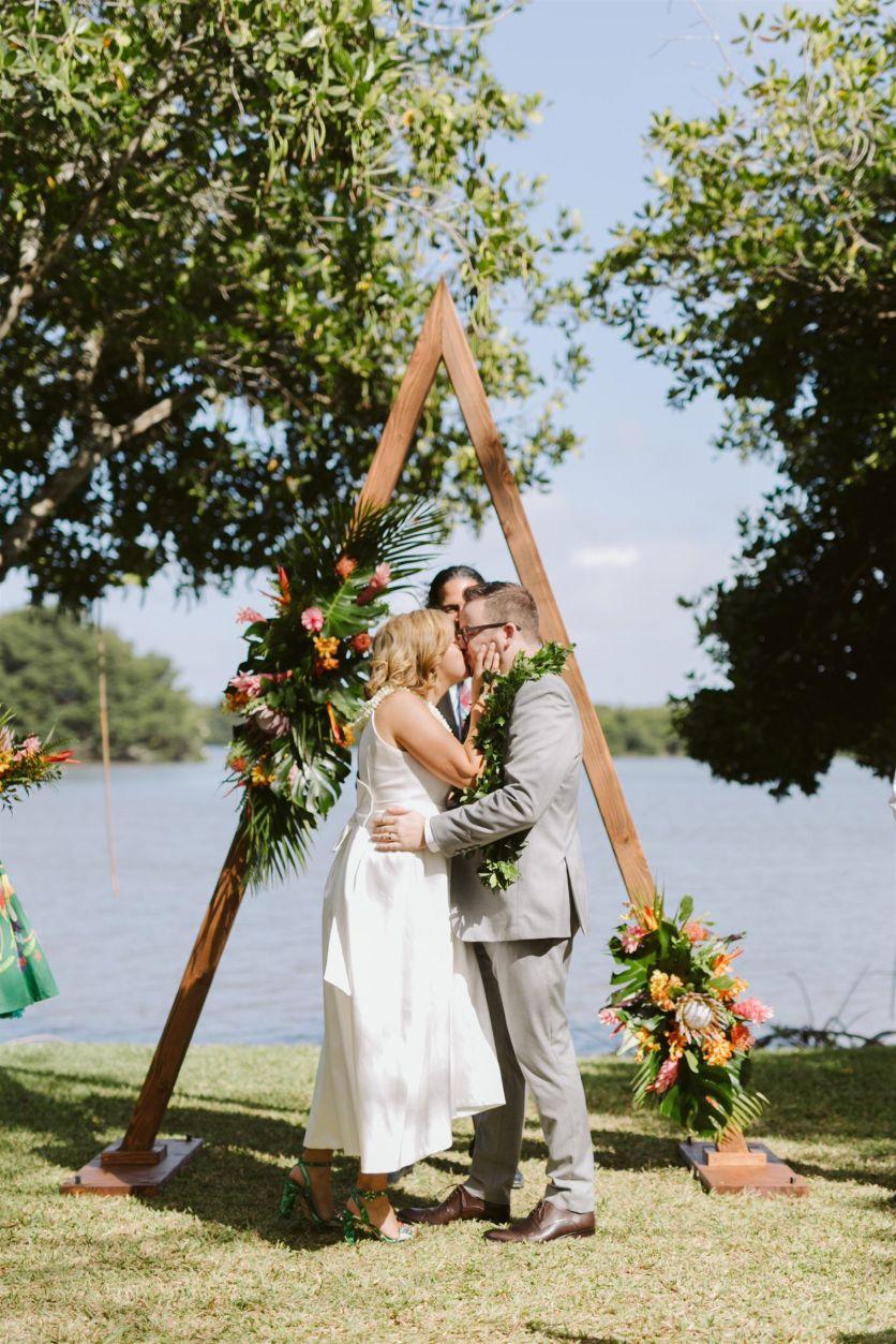 I started looking for wedding photographers by stalking the Instagrams of photographers on Oahu. It was really important to us to have somebody local to Oahu, whose creative vision and editing style matched our preferences. (These preferences were specific: I love colors, wanted a photographer who would bring out the green environment and colorful flowers rather than making everything "sad beige" style, but also have sort of classic/romantic looks, and bring authenticity). Sarah fit all these things perfectly! Sarah was wonderful to work with, easy both in our pre-wedding planning and on the day-of. She "got" our vision pretty much right away, and it was easy to both improvise things and fit in shots from the list that we wanted. We were looking for both silly/casual/fun photos but also some beautiful shots with views of our gorgeous venue, and we loved how they all came out! I'd highly recommend Sarah as a wedding photographer!