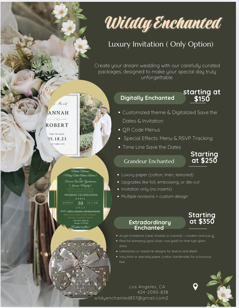We couldn’t have asked for a more thoughtful and personalized experience than we had with Wildly Enchanted. Dora is so warm, thoughtful and a good listener. From the very first meeting, Dora truly listened to our vision and worked tirelessly to make it a reality. Every detail felt tailored to us — from the décor to the timeline — and they were always flexible, creative, and attentive to our needs. Their care and attention made the entire process stress-free, and on the day of our wedding, everything ran flawlessly. It genuinely felt like our celebration was crafted just for us, reflecting our personalities and story. We are so grateful for their professionalism, warmth, and dedication — Wildly Enchanted helped us create a wedding that was not only beautiful but deeply meaningful. Highly recommend to anyone looking for a planner who truly cares and delivers a customized, unforgettable experience