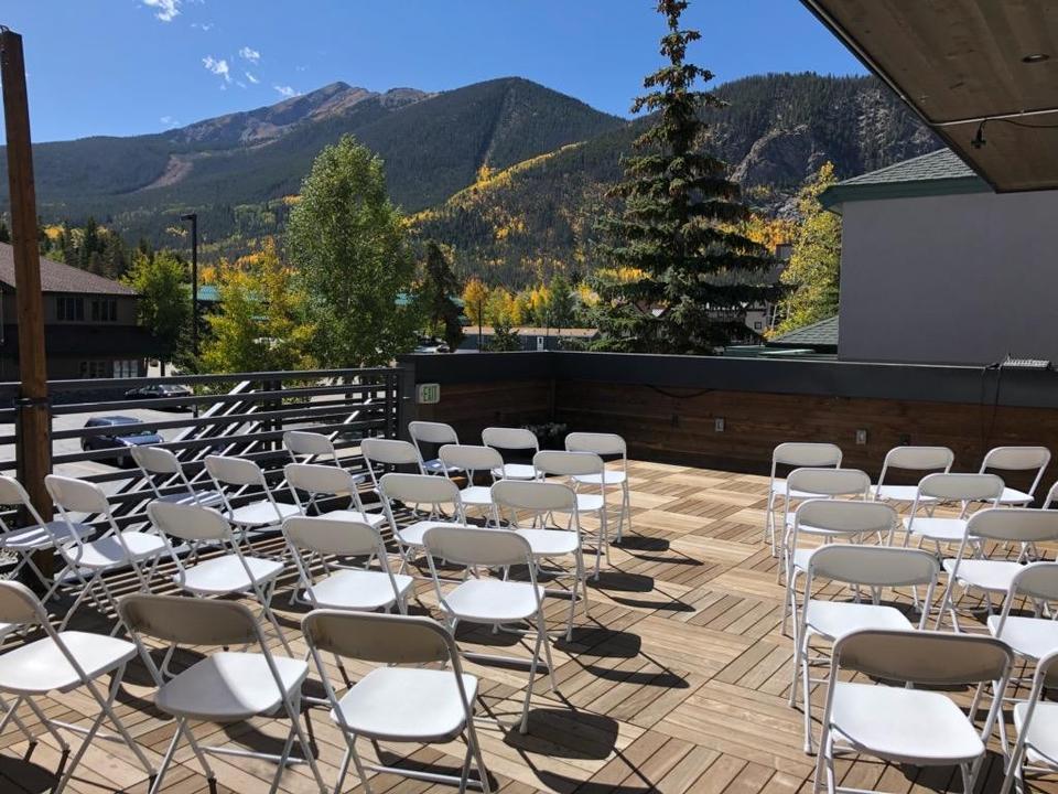 10 Mile accommodates weddings up to 200 guests. Decor is Modern/ Industrial with reclaimed wood accents and Edison bulb fixtures throughout, creating the perfect mountain wedding in Frisco, CO. 10 Mile is a two-story venue featuring a wrap-around balcony with two garage doors that open up to a 1,000 square foot rooftop deck. The upstairs patio boasts sweeping views of the 10 Mile Range creating the perfect venue for an intimate ceremony or cocktail hour. Doubling as a concert venue, 10 Mile specializes in live music, and guests have full access to our state-of-the-art sound system, A/V equipment and concert style lighting, making the entertainment portion of your event a stress free event.
