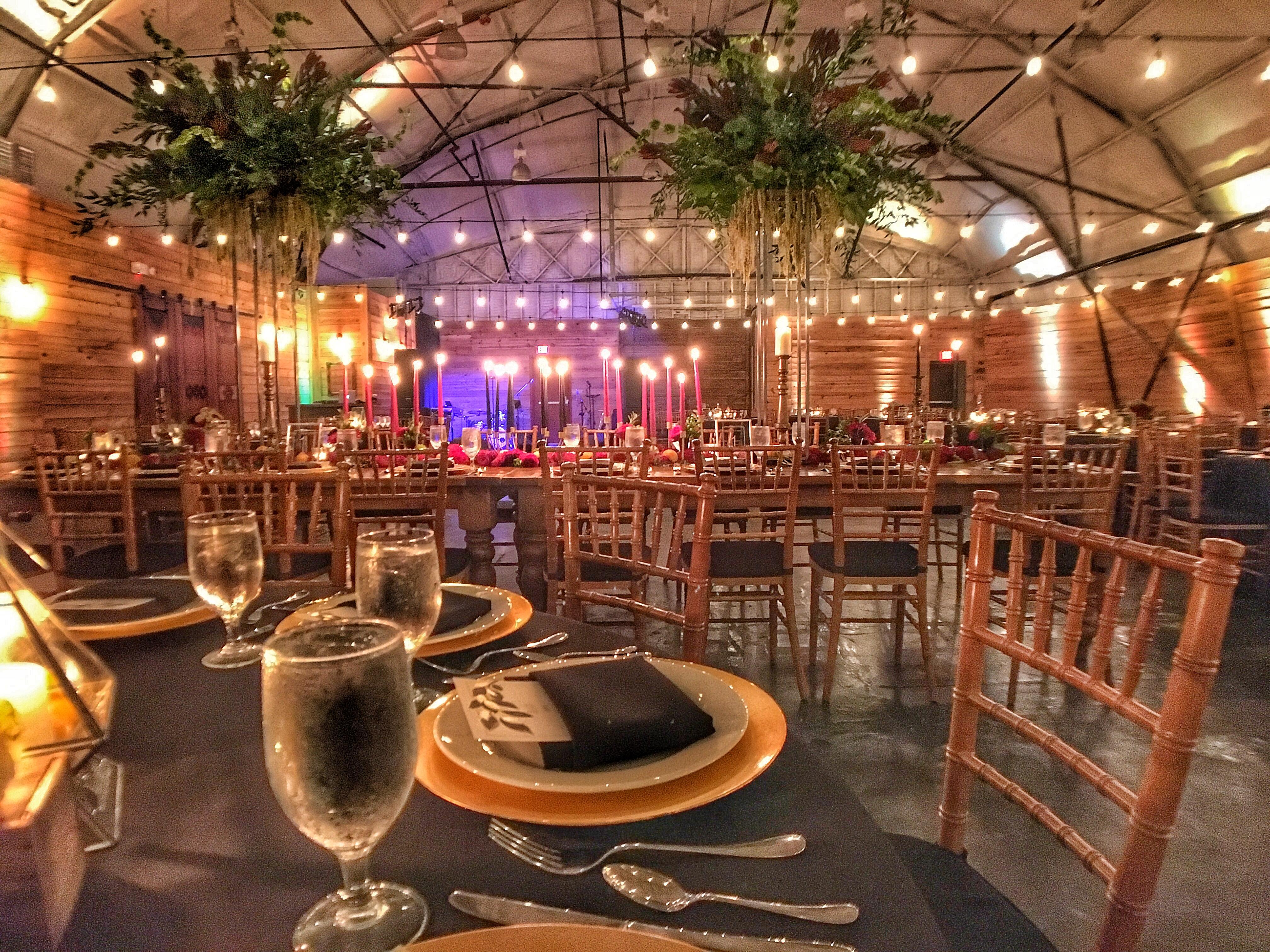 - Use of main room with air conditioning - 8 hours of venue rental (additional hours available for fee) - Use of (22) 60" round banquet tables - Use of (12) 32" round cocktail tables - Use of (7) 6' rectangle tables - Use of (150) mahogany chairs - Valet parking for up to 50 cars (additional lot available for fee) - Edison market lighting throughout - Built in bar location - Venue staff - Day of coordinator