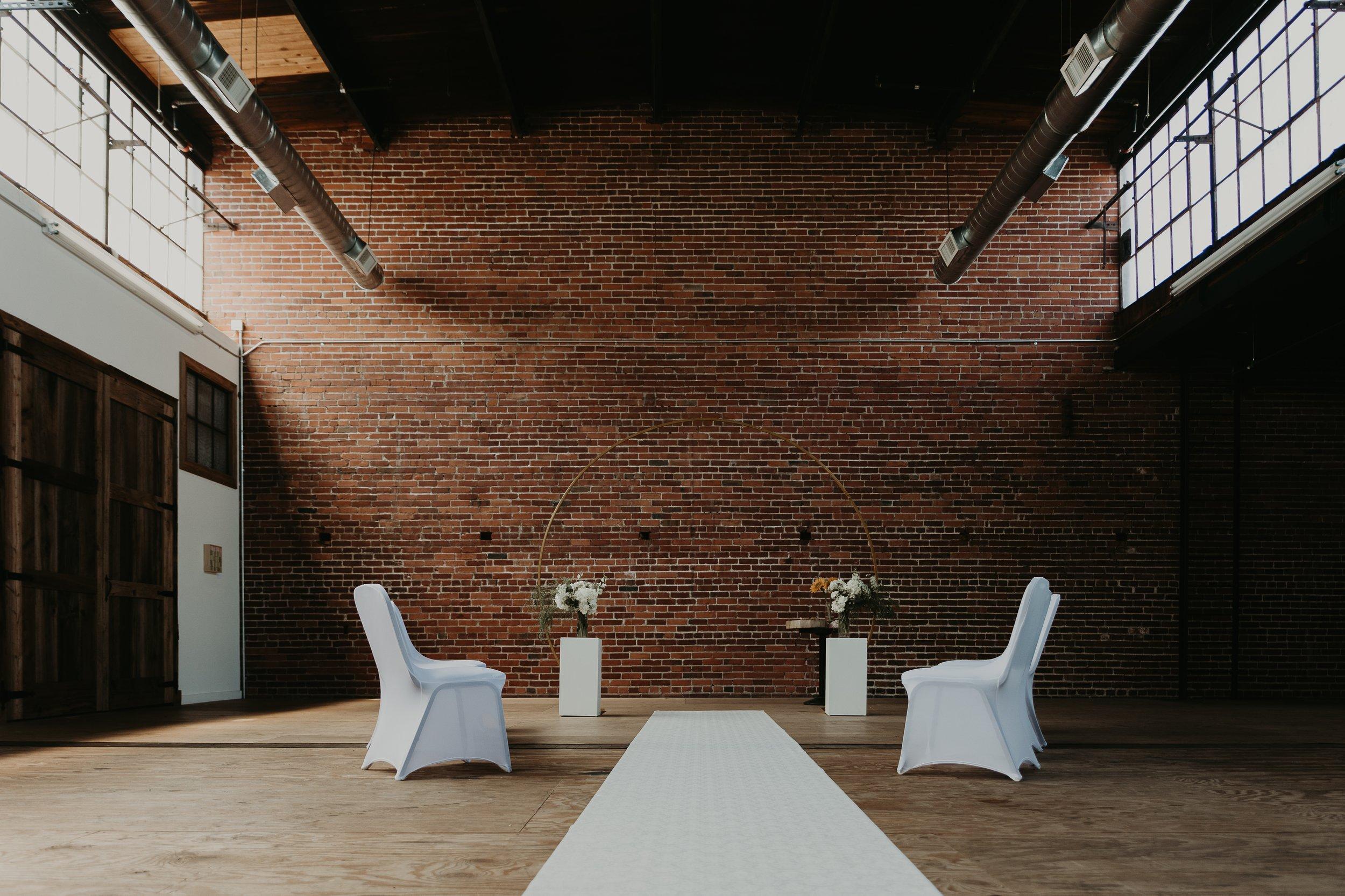 Our upstairs gallery's large windows flood the space with beautiful natural light and highlight our exposed brick walls and art exhibits. The gallery room is a unique setting perfect for more intimate gatherings such as showers, brunches, rehearsal dinners, cocktail hours, and smaller ceremonies and receptions. This area can accommodate 100 seated banquet style and 200 standing. There is one bathroom off the gallery for use.