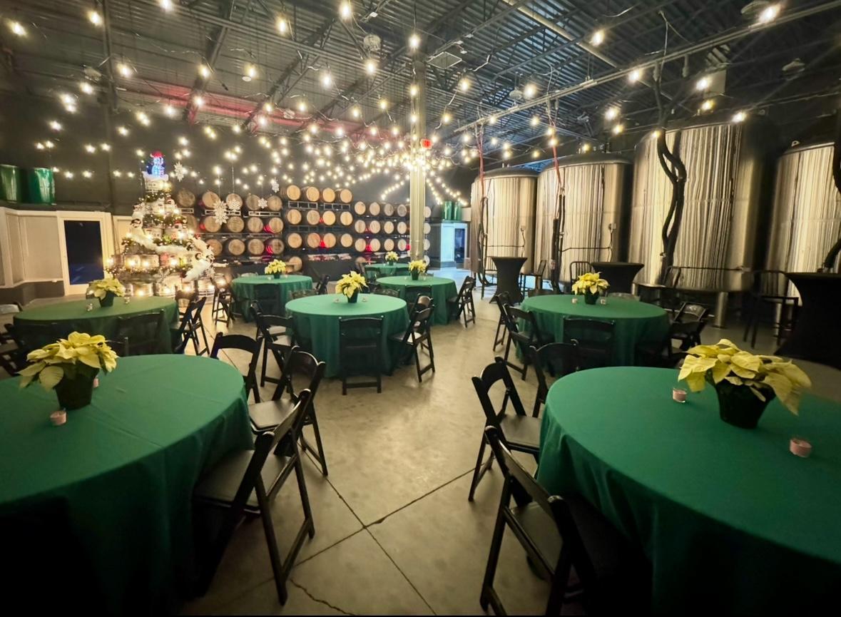 A private space within our Brewhouse allows for a fun, atmosphere while surrounded by brewing tanks, barrels of beer and so much more!