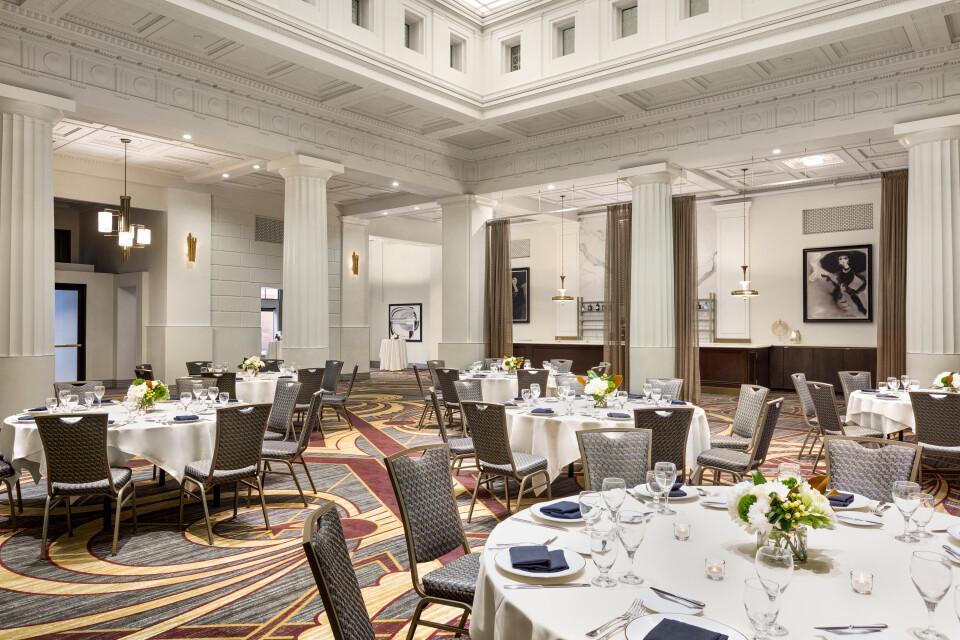 Turn back time at 17th by Magnolia, a wedding venue located in Denver, Colorado. This one-of-a-kind art-deco-inspired venue features original 1920s architecture and a stunning glass ceiling. Great for weddings, rehearsal dinners, and more, this downtown space is sure to impress! Our vintage event space includes the use of our chairs and tables as well as setup and breakdown of these items. We allow licensed outside caterers and vendors except for alcohol and bar service, which our skilled bar staff will handle at our stunning built-in bar. If you prefer a one-stop shop, we can also handle catering through Harry's at the Magnolia Hotel Denver, a Tribute Portfolio Hotel. The hotel can also offer discounted rates for sleeping rooms and getting-ready rooms for weddings taking place at our venue. For ceremonies, we can flip the room during cocktail hour, we can offer our Magnolia Lounge, or we can offer awards ceremony setup. We look forward to hosting you on your special day!