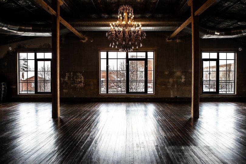With the original wood floors and over 800 tin ceiling tiles still intact and beautifully restored. At the top of the grand staircase in the all-glass foyer, guests will find a tall corridor, flanked by two sets of massive, 12-foot turn-of-the-century doors, leading to a grand ballroom, complete with a show-stopping chandelier.