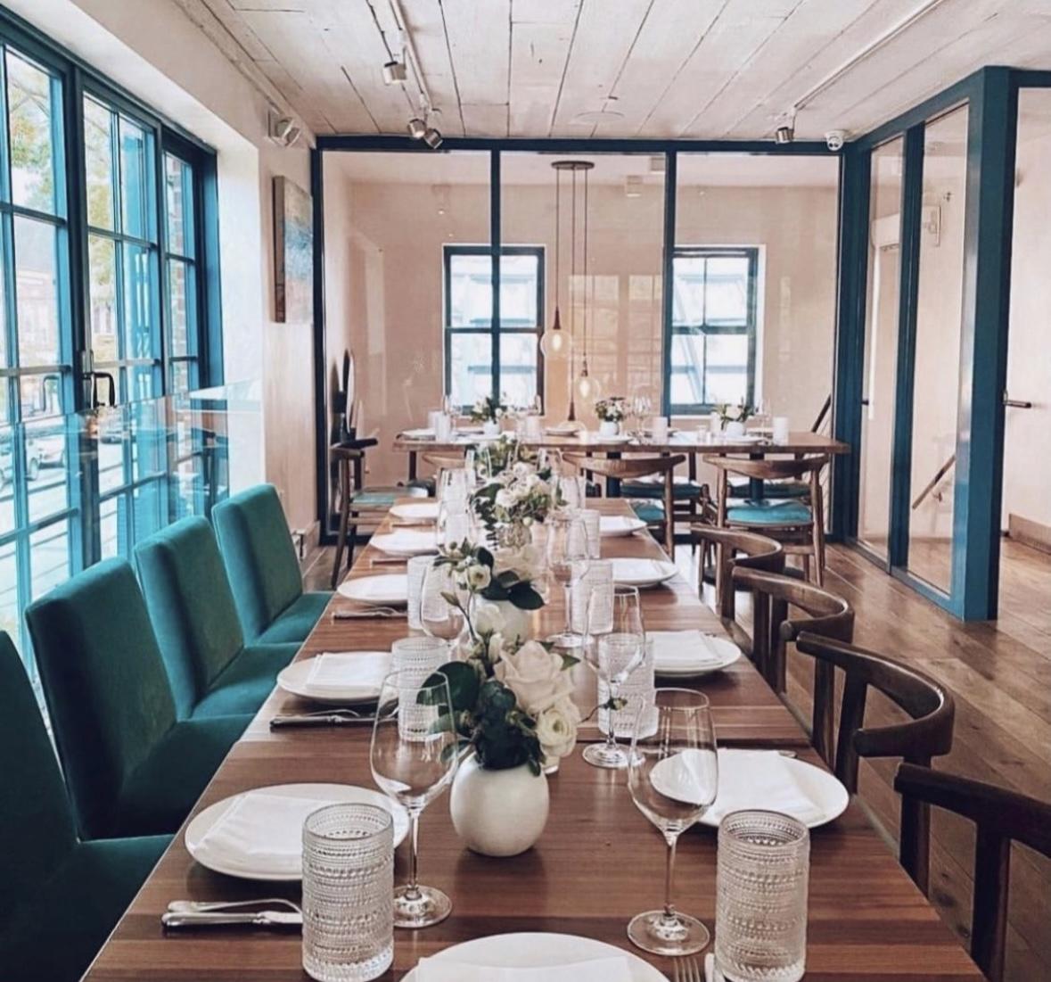 2 Spring’s newest space, the Atrium, completed in 2021, is an airy sunlit room inspired by the great courtyards of Europe. This space can accommodate cocktail-style events for up to 55, and seated dining for up to 40. Our second floor space is flanked by oversized french windows with views of Oyster Bay's historic town square. We can accommodate a group up to 30 for a seated event and up to 40 for a cocktail-style event. For a more social & engaged event, 2 spring creates a seamless flow in our two-story urban townhouse, comprising our first floor dining room, mezzanine, & atrium. Our first floor is flanked by oversized french windows that open during the warmer months, a reclaimed wooden bar with zinc counters and glass chandeliers. 2 Spring can customize your event with stationary or passed canapes, perhaps beginning downstairs and progressing to the mezzanine level and atrium for a more bountiful fare. The options are endless and can accommodate groups up to 125.