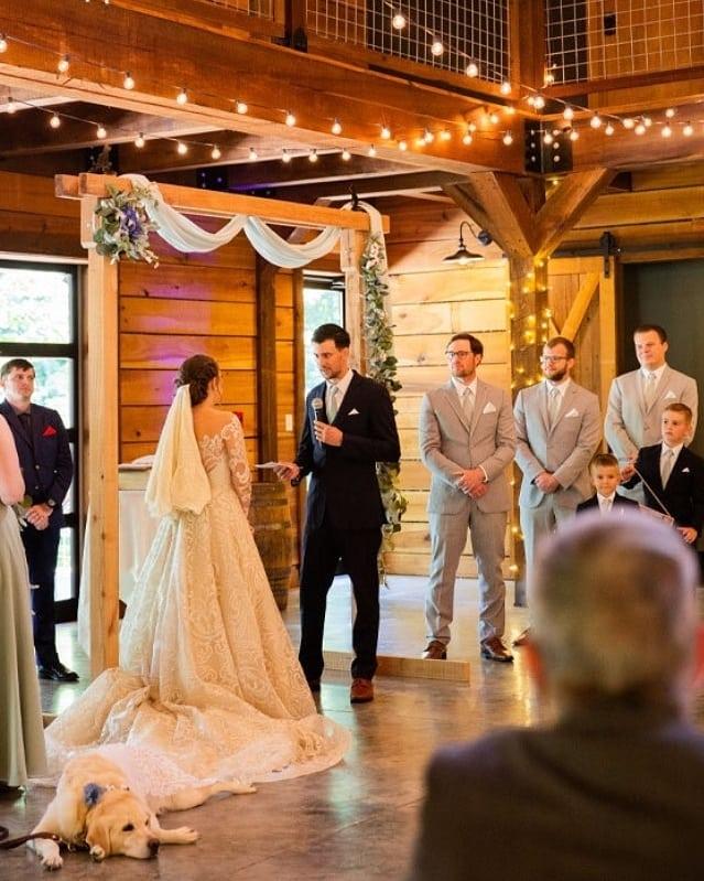 At 3 Fat Labs, you have your choice between two beautiful ceremony locations: one inside, and one outside of the barn. We love offering our couples options to make sure that they always get the perfect wedding day. Our indoor barn ceremony is also a wonderful option if by chance the weather is not cooperating.