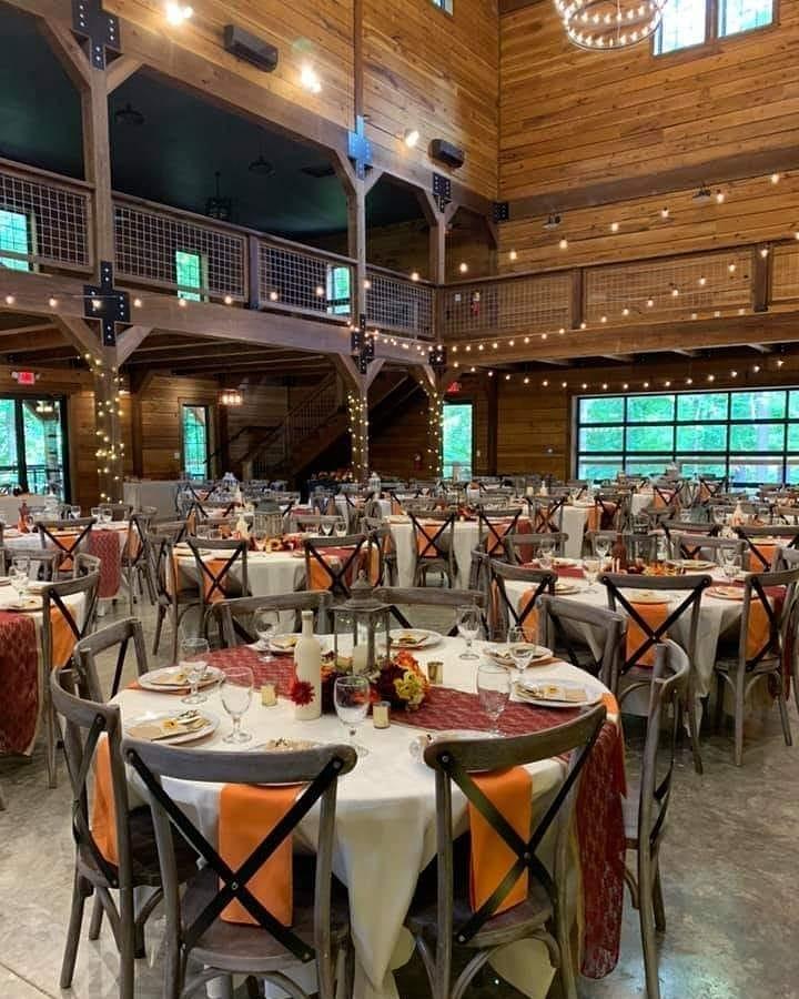 A destination in your own backyard. Be captivated by a sophisticated country-style retreat for your wedding. Experience picture perfect views with vibrant nature inspired backdrops where we turn your special day into an unforgettable getaway! Truly Unique Barn Venue. Built in 2018, a state-of-the-art facility set in the woods of Putnam County Indiana. Many of the timbers used to construct the barn came from clearing the property to build the barn. With over 14,000 square feet of indoor conditioned space and 6000 square feet of outdoor space you have the flexibility to create your perfect event.