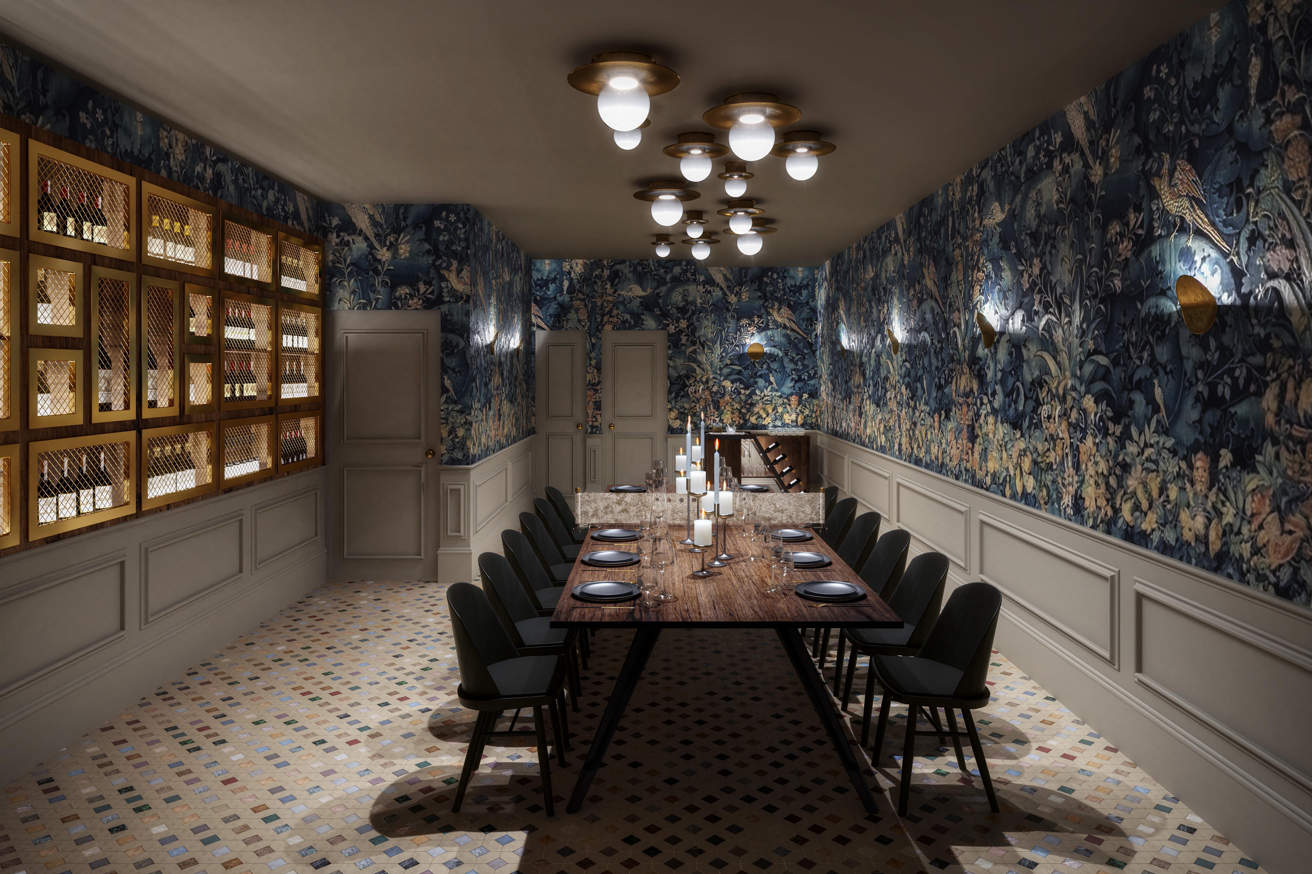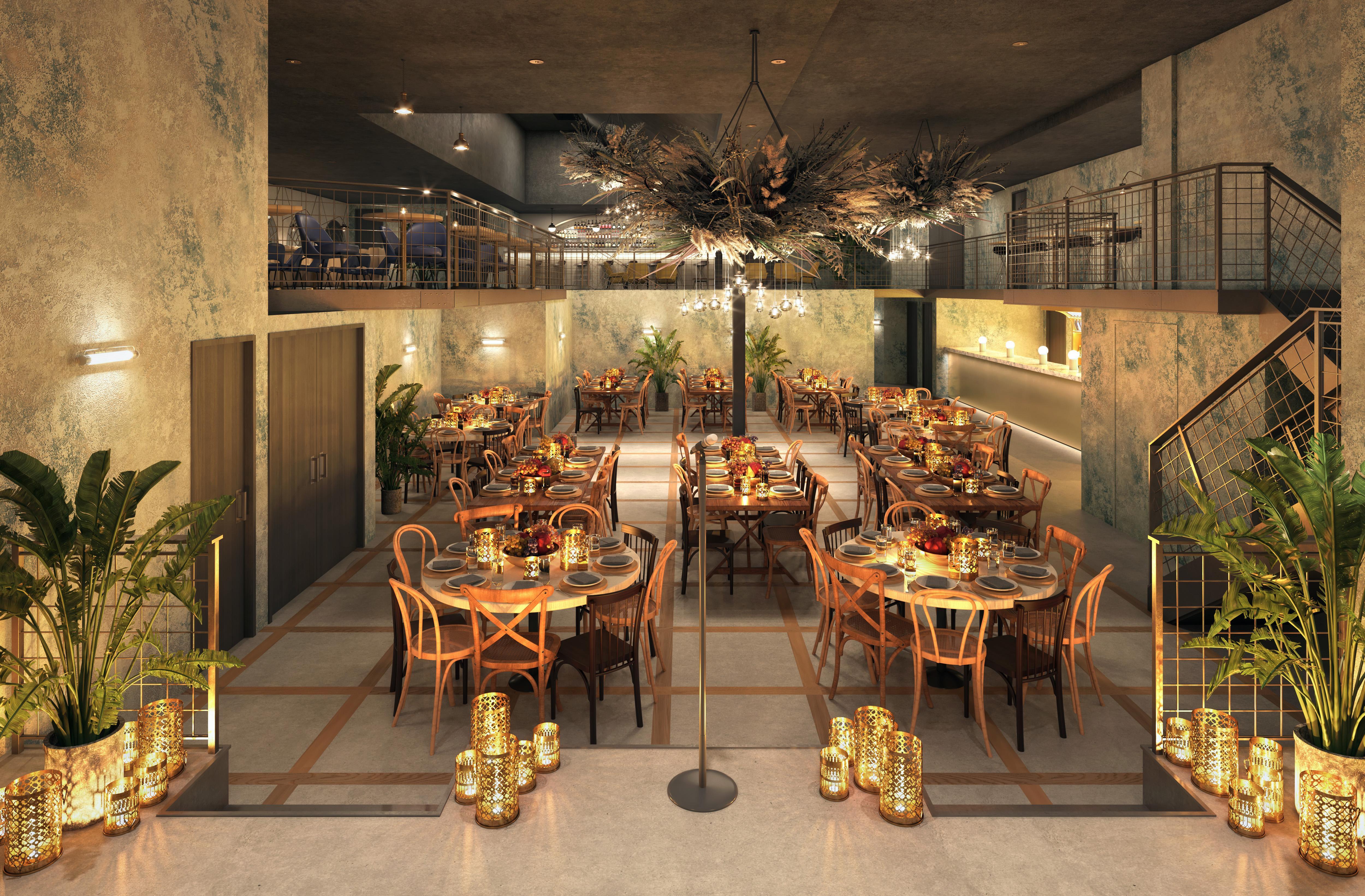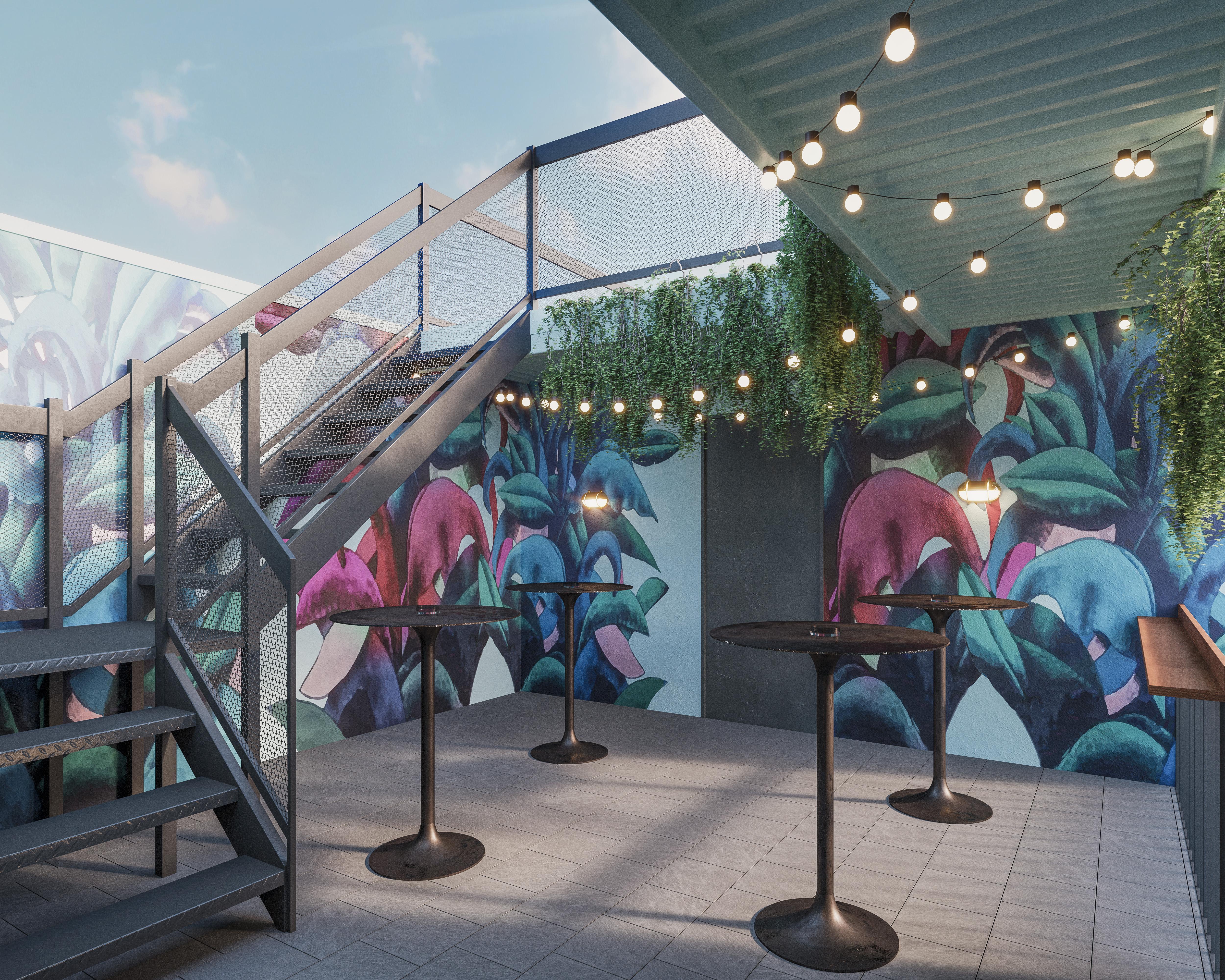 With a dual-functioning brass ping pong dining table serving as its centerpiece, our multi-functional space suits events ranging from board meetings and VIP dinners, to milestone birthdays and social cocktail parties. Our Courtyard is the perfect outdoor compliment. Creating a truly unique hideaway experience for guests, its walls are painted with a neon-hued mural depicting large scale vegetation - a modern take on the traditional scenery wall coverings of The Dining Loft.