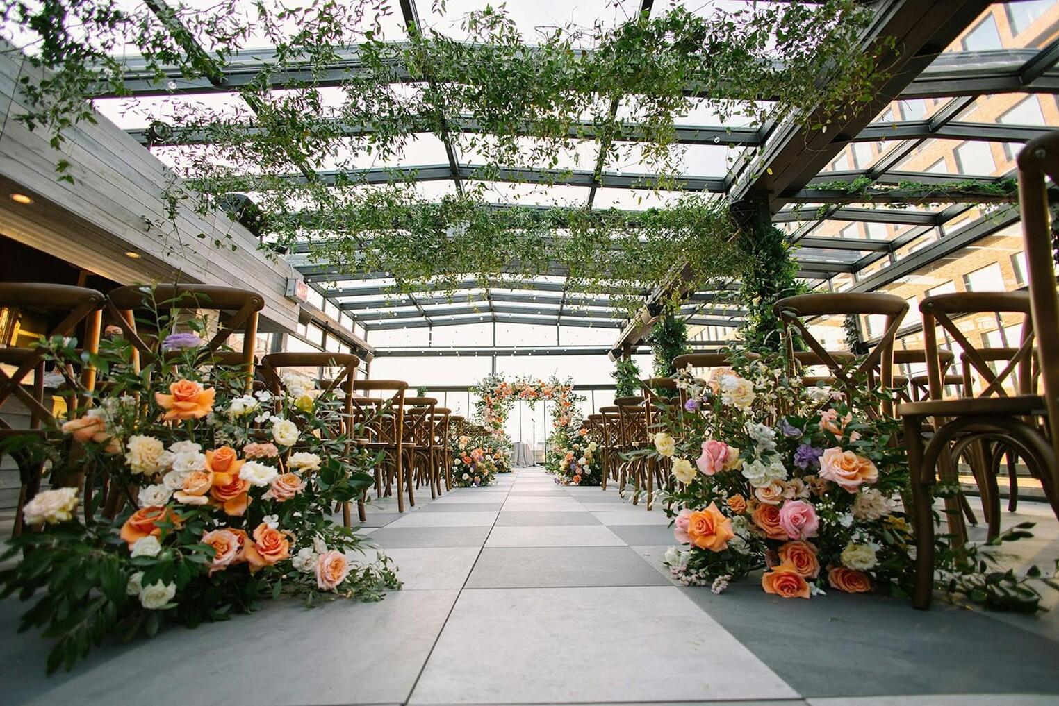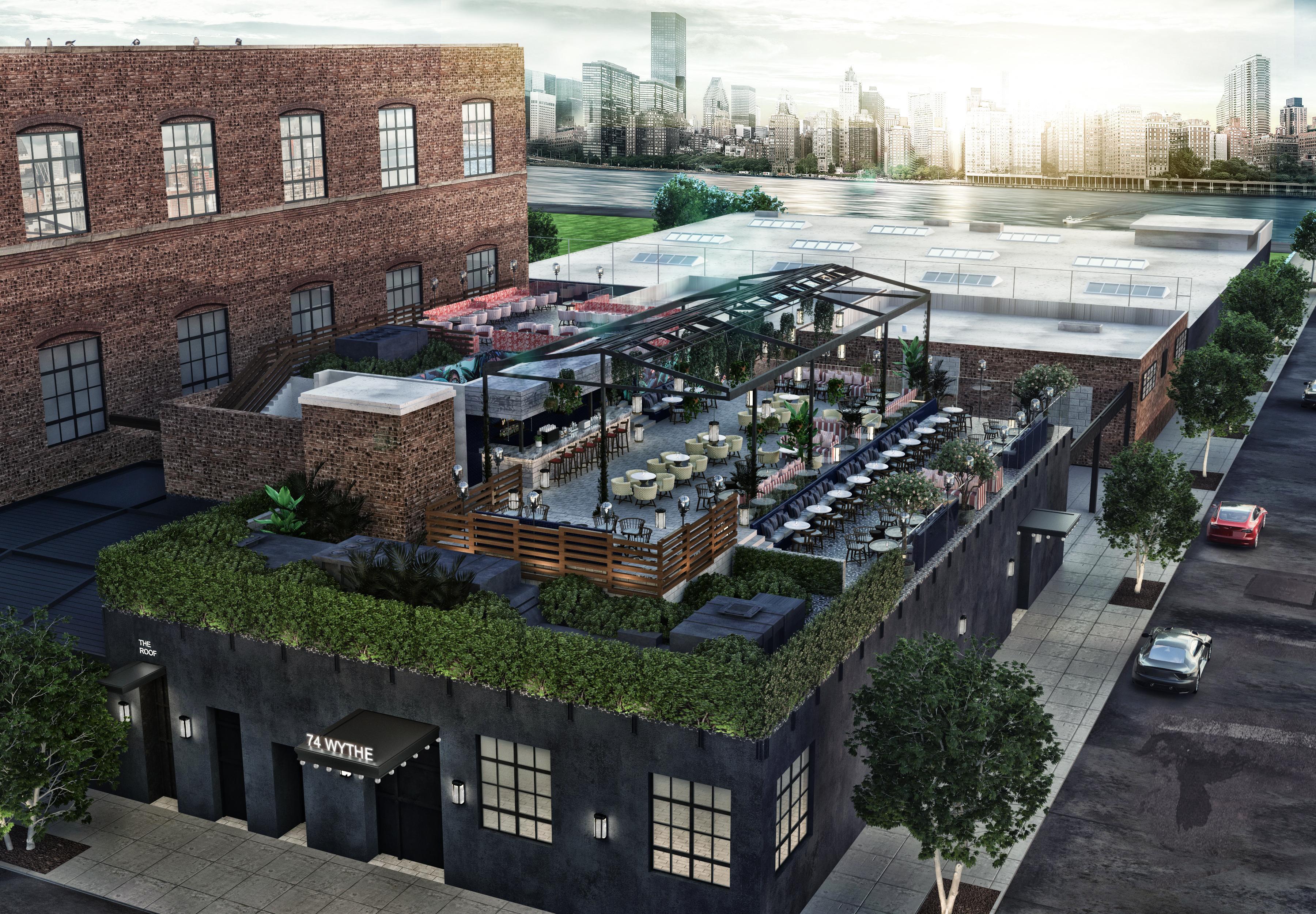 The experience begins at street level, where a stairwell with reflecting lights that emulate the sense of walking under water, serves as a threshold between two worlds - just one of the many access points to The Rooftop at 74Wythe. Spanning 5,000 square feet of the verdant outdoors, our multi-level rooftop provides an unparalleled event destination your guests will never want to leave.