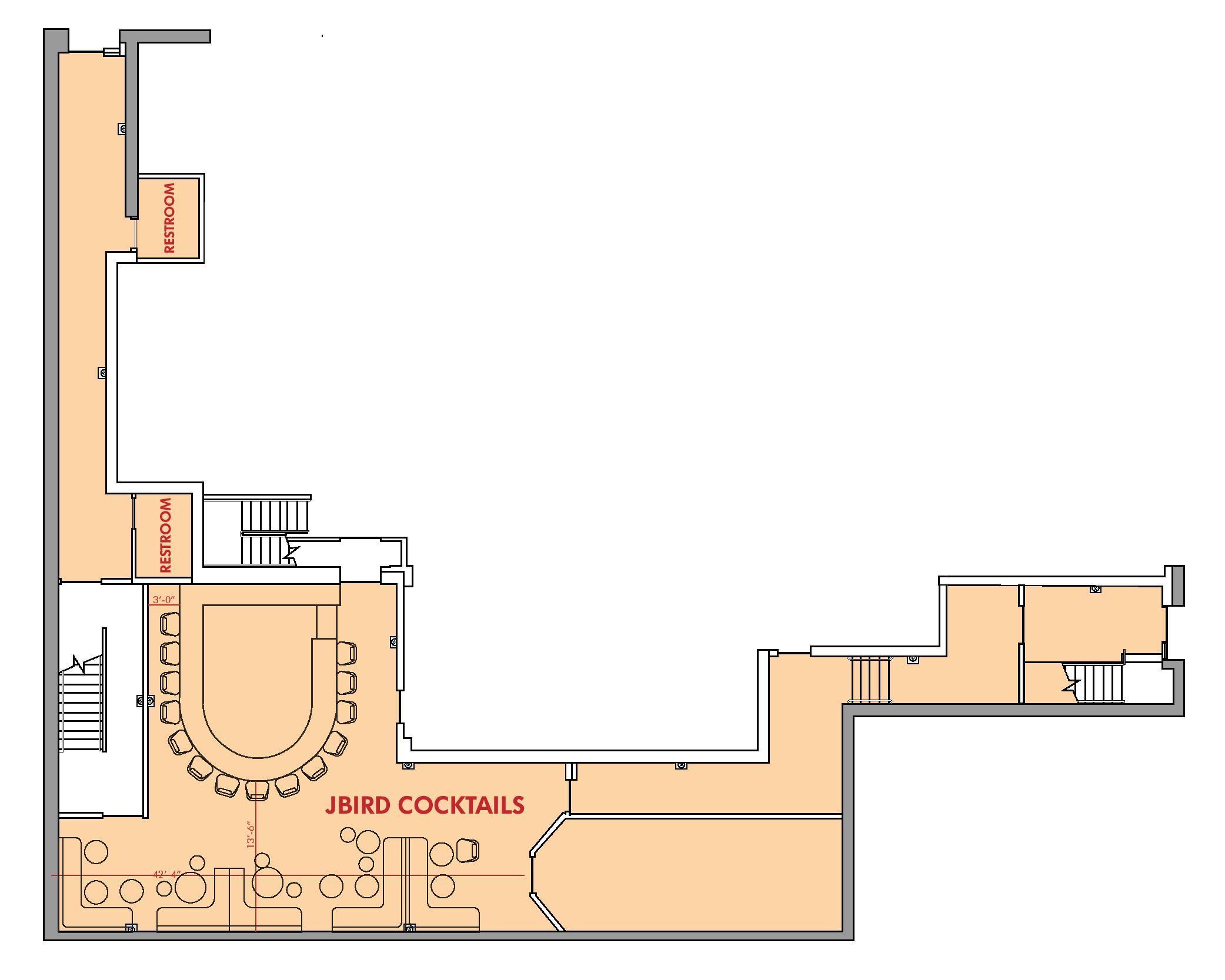 Occupying the discrete upper level of Jbird Cocktails, The Loft offers an intimate and exclusive setting for up to 30 guests seated.