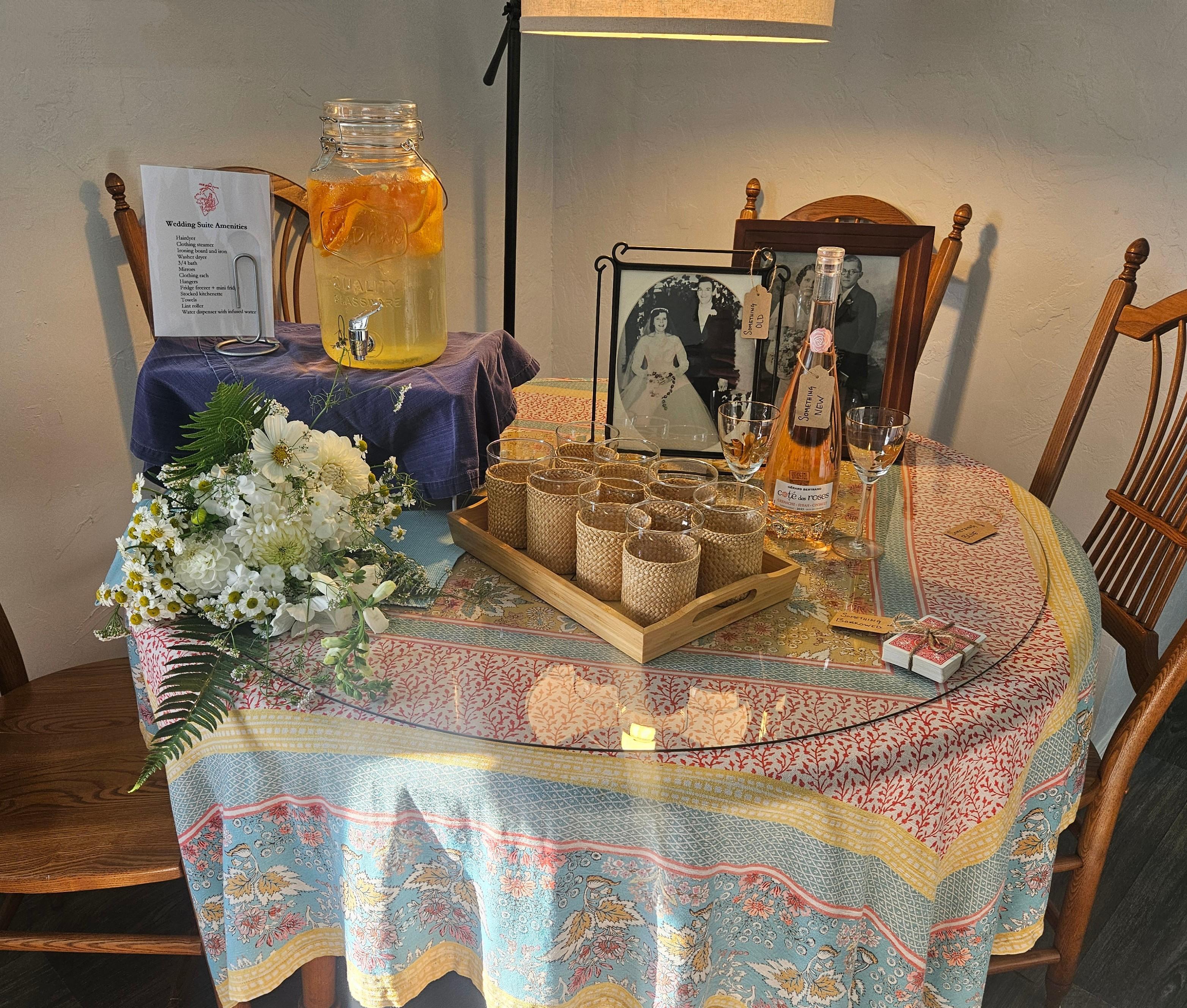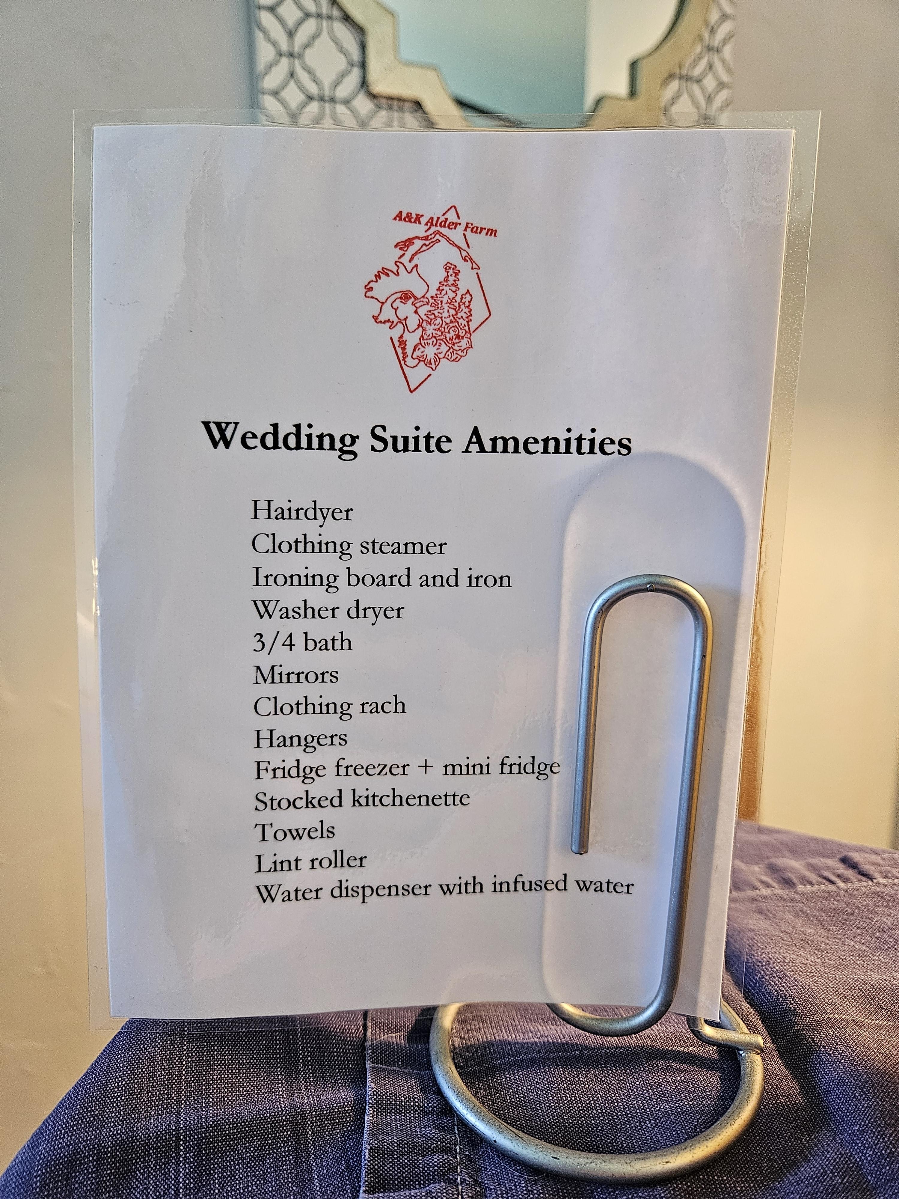 The perfect area to get ready, order champagne and charcuterie, or get a pre wedding massage!