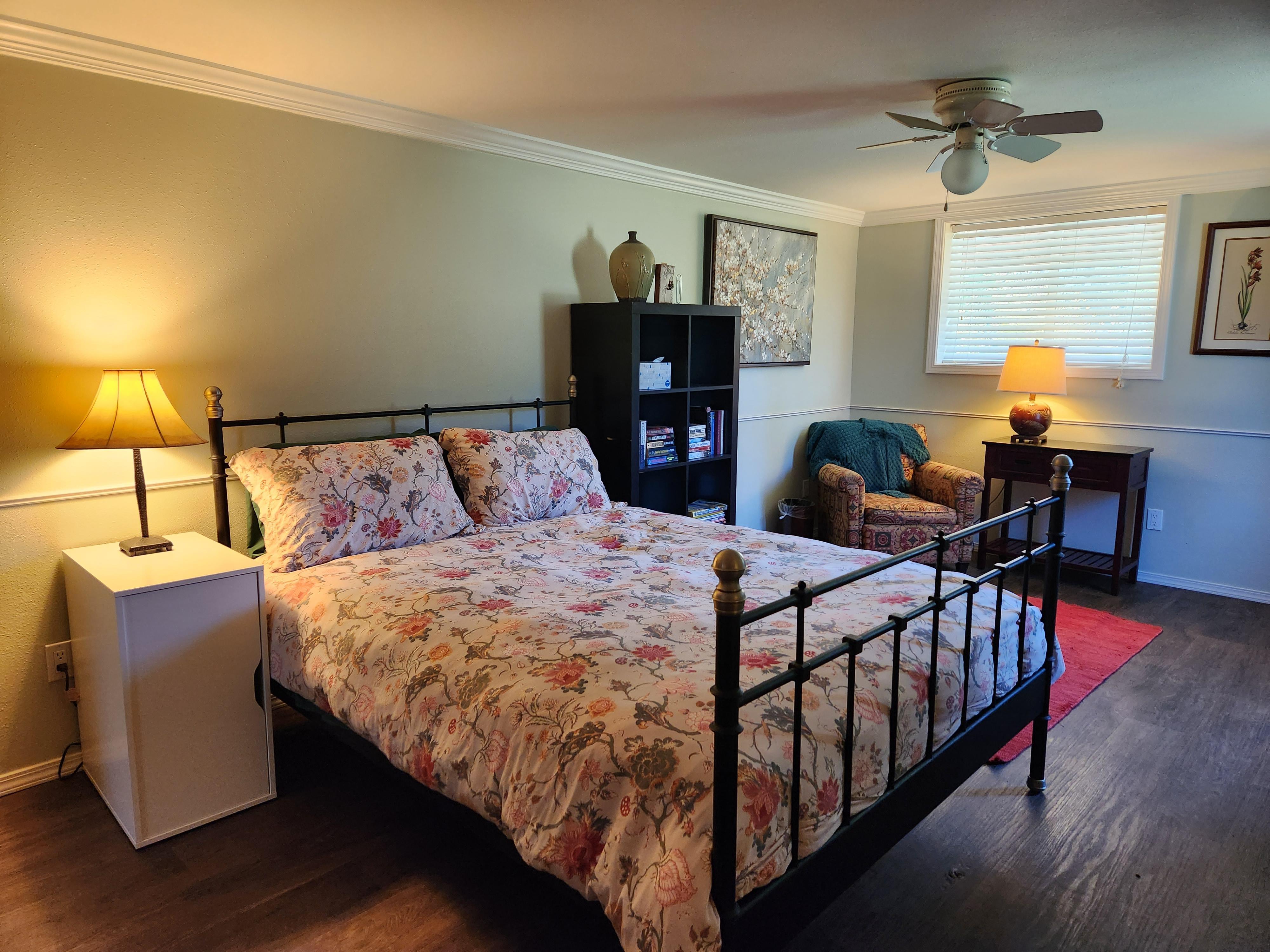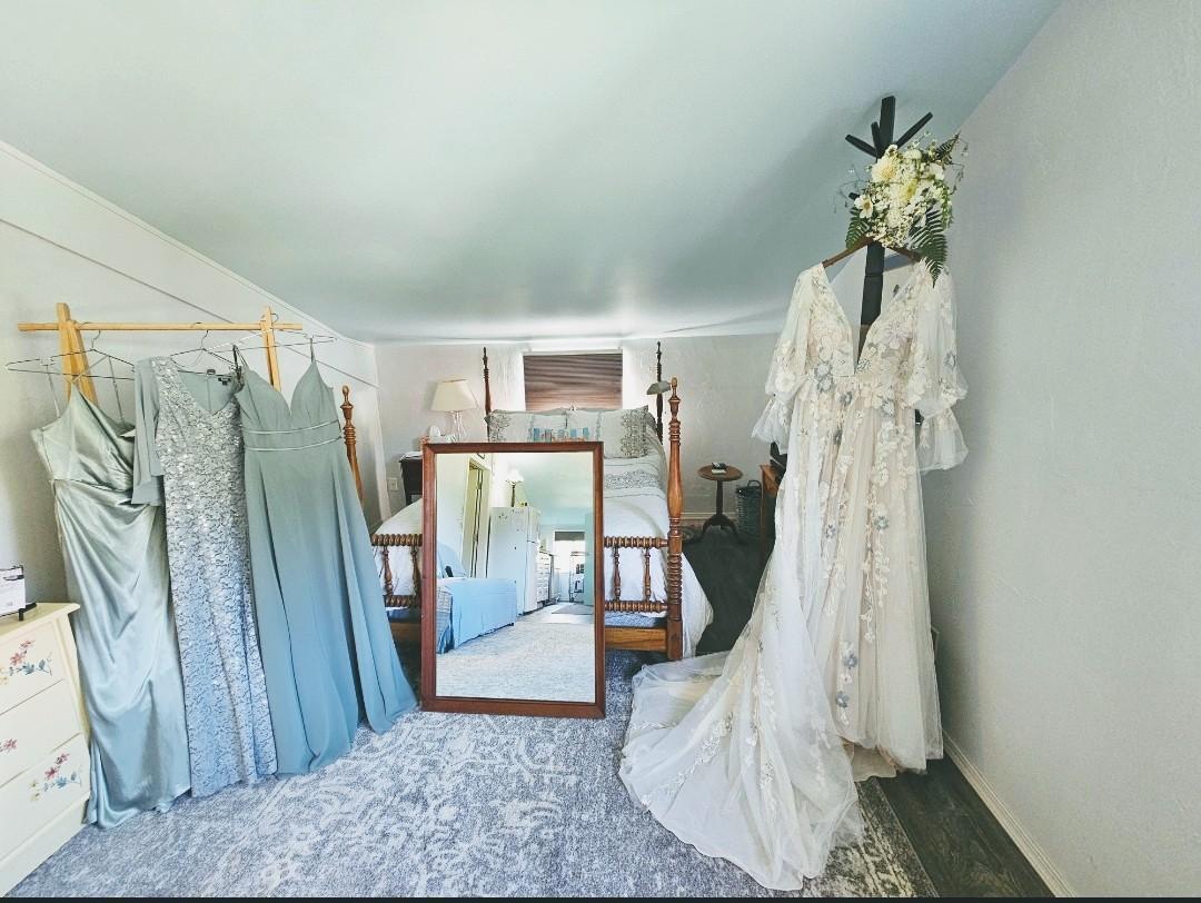 An upstairs apartment with full kitchen and bathroom available for getting ready. The space has 3 windows that allow plenty of natural light to enter.