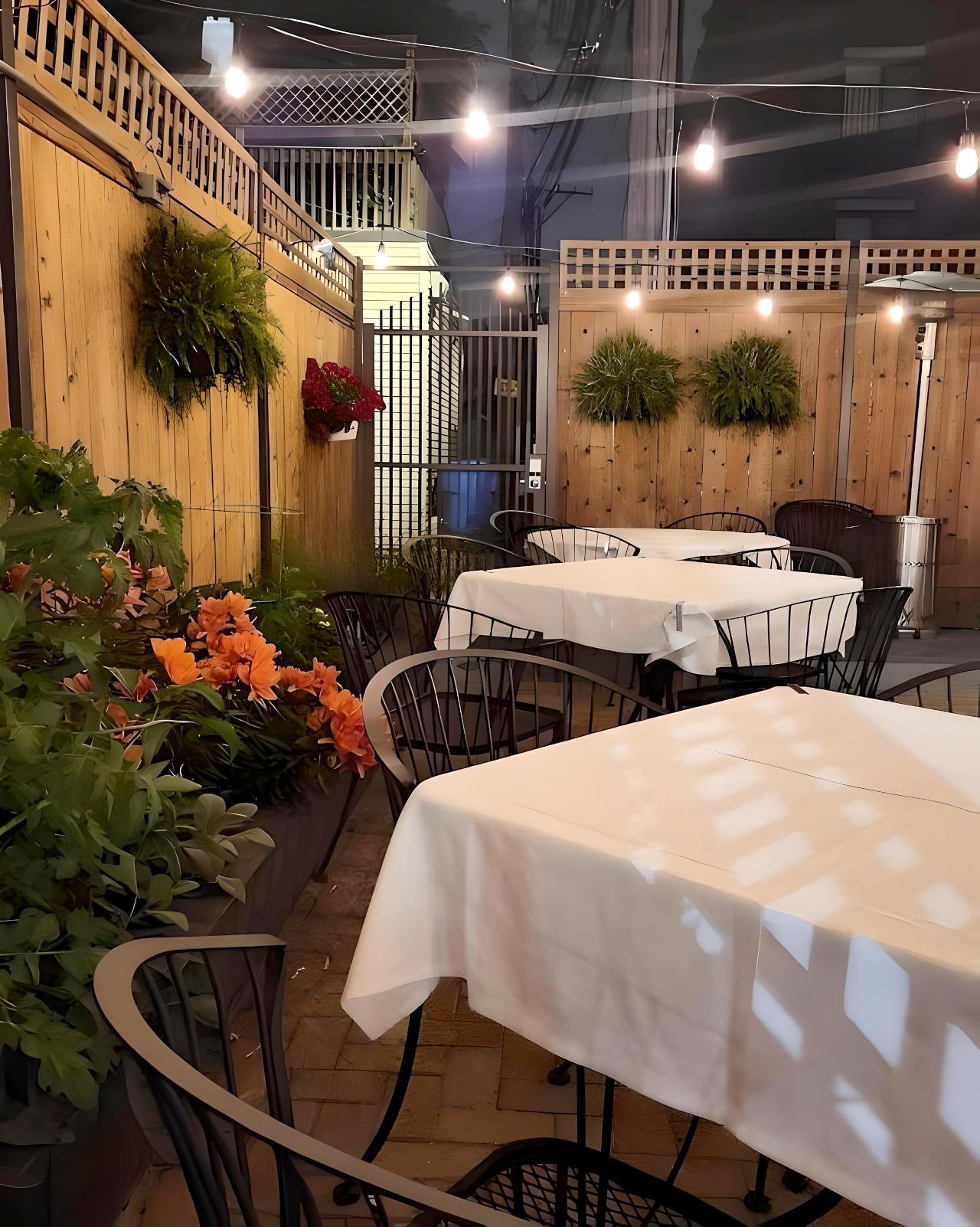 Dine under the stars at A Tavola’s charming La Terrazza Al Patio, where the spirit of Italy comes alive amidst a lush urban oasis.