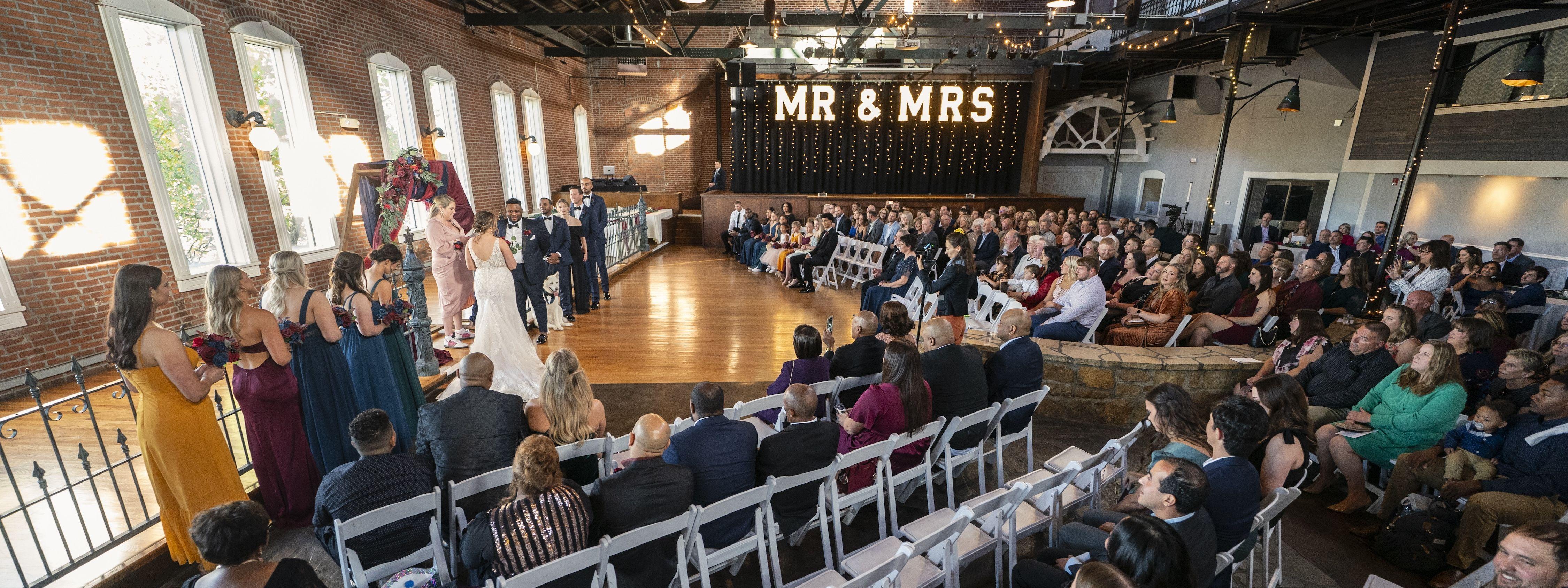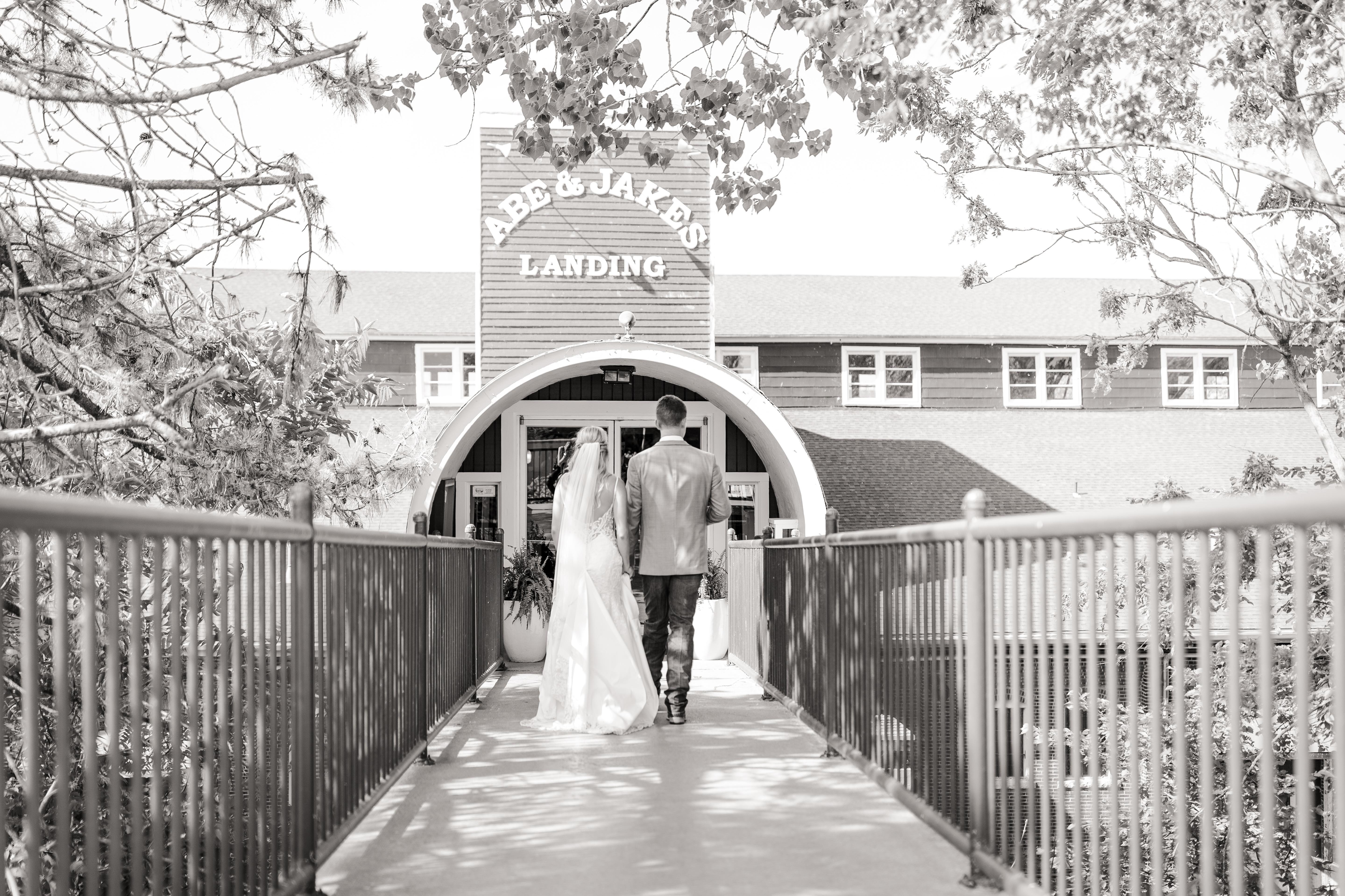 Originally the home of the Consolidated Barbed Wire Company, this historic building in downtown Lawrence has been given new life and a fresh look. Featuring a spacious open floor plan, finished wood and natural stone floors, and 15-foot-tall windows overlooking the Kansas River, Abe & Jake’s offers industrial charm in a contemporary setting. Our 14,000 sq. ft. main event space includes a large stage, spacious dance floor, high ceilings with exposed industrial beams, and a custom bar. Abe & Jake's also offers newly renovated Bridal Suites and several smaller event spaces perfect for hosting showers, rehearsal dinners, and more.
