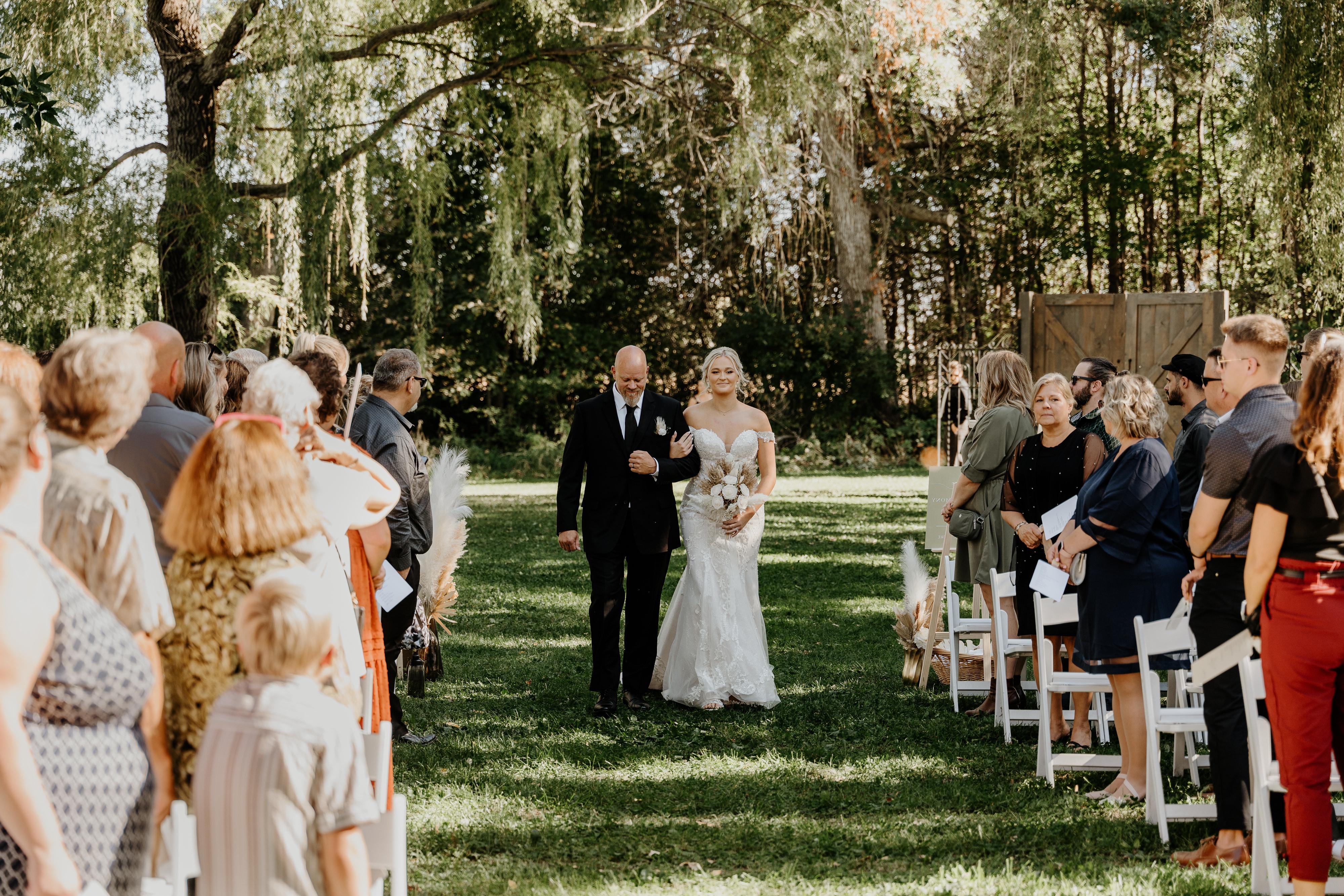 Surrounded by hundred-year-old willow trees, this is our most popular outdoor ceremony location, the Willows is located 1/4 mile from the main reception area and access via a gravel road. A trolley is available to transport guests to and from this location for $500, or guests can take an 8-minute walk through our sunset fields to reach this beautiful destination.