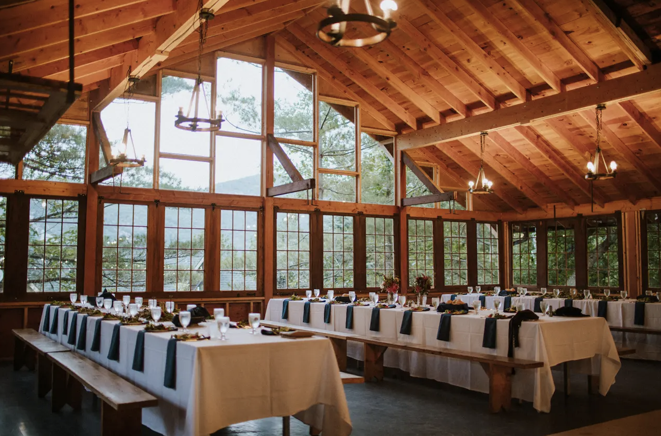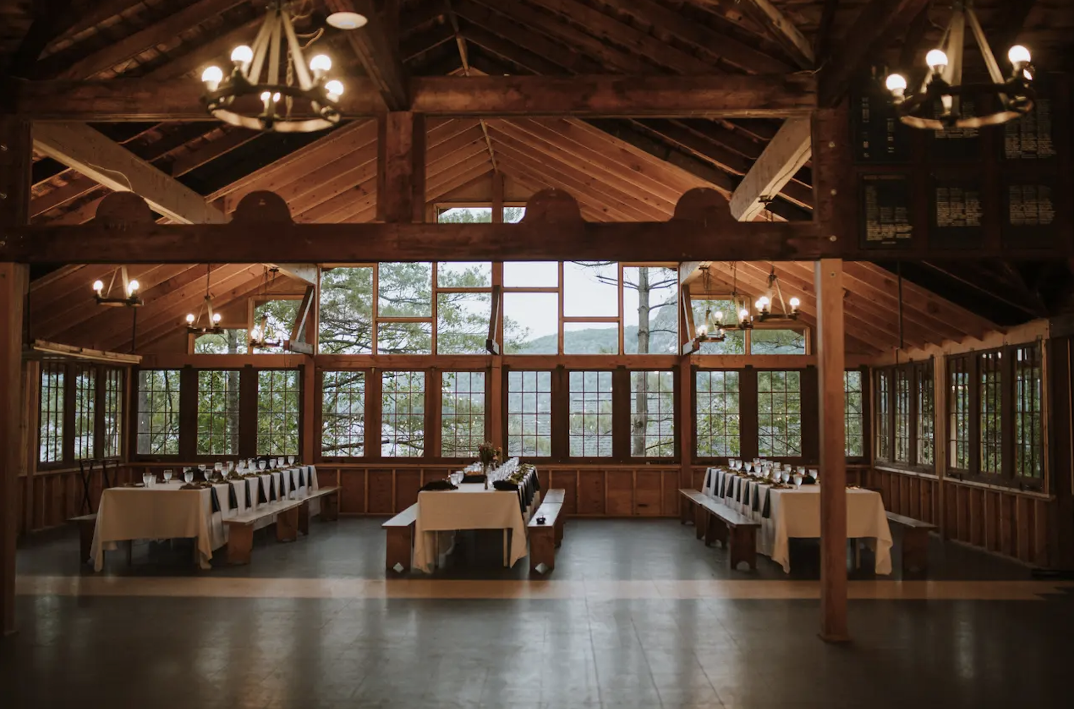 The camp boasts both indoor and outdoor spaces for you to celebrate your union. Exchange vows under the sun and dance the night away in the charming dining hall, whatever way you plan your day, the 36-acre property is full of opportunity. You can invite up to 300 loved ones to join you on your special day in the spacious dining hall, complete with a high beamed ceiling and exposed-wood features. A large kitchen is ideal for on-location meal preparation of a family-style service. Guests can be accommodated in the onsite cabins throughout their stay, with WIFI connection for their convenience.