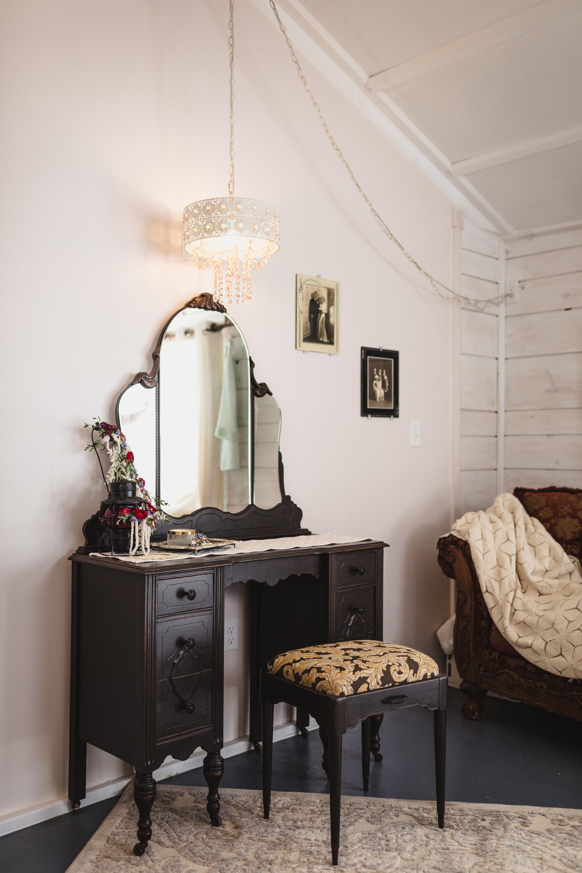Prep for your wedding and enjoy spending time in our Cabin. Your hair and makeup can be completed right on site, the vintage kitchen is a great place to use the coffee bar, and chill your mimosa's in the vintage refrigerator! Complete with outside seating areas! Use of the Cabin is included in your rental, available until your reception begins.